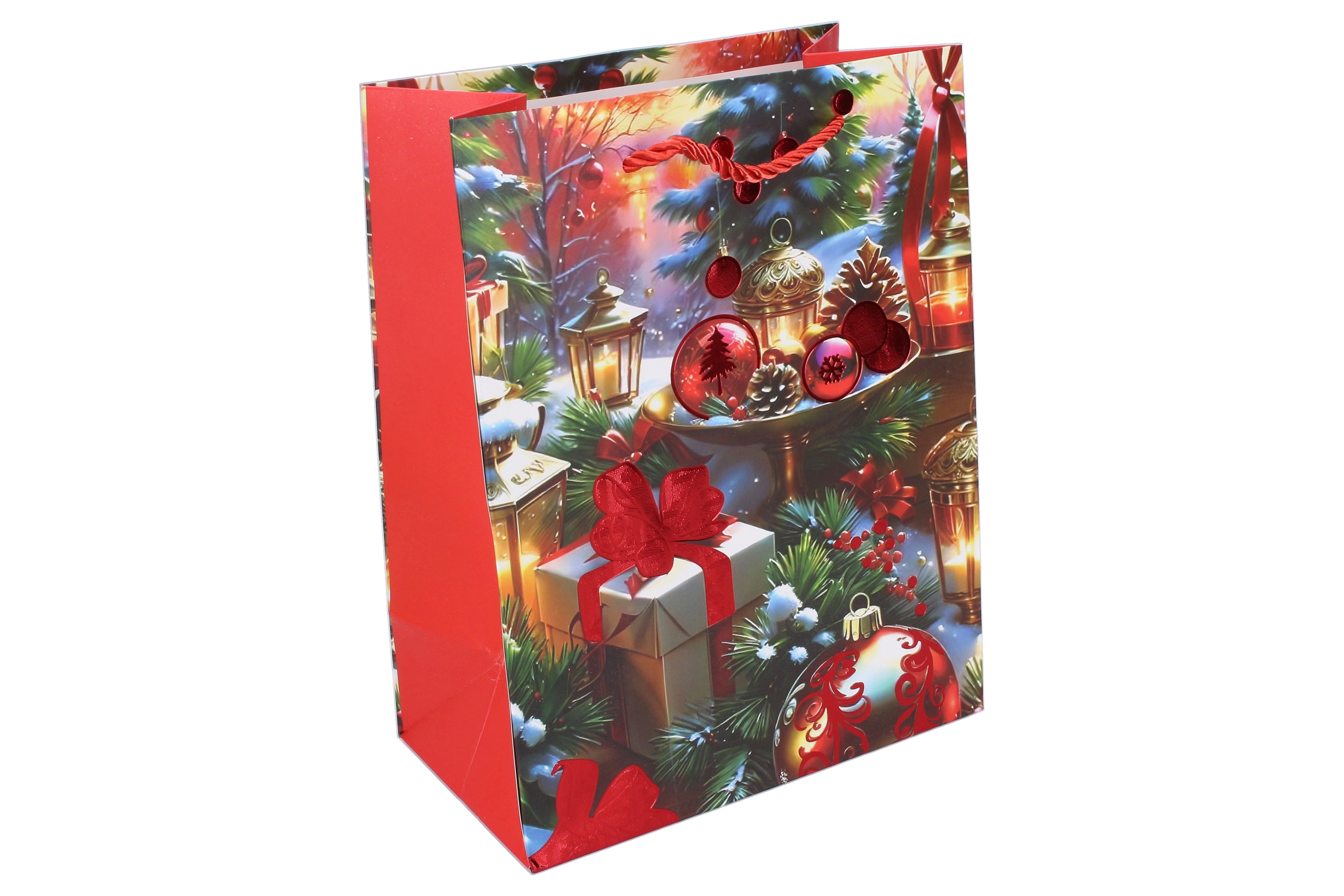 Varat izvēlēties no 4 dažādiem Ziemassvētku dizainiem, kas piešķir dāvanai svinīgu izskatu. Maisiņš ir izgatavots no kvalitatīva papīra un ir atkārtoti izmantojams, kas to padara par videi draudzīgāku alternatīvu vienreizlietojamiem iepakojumiem.