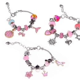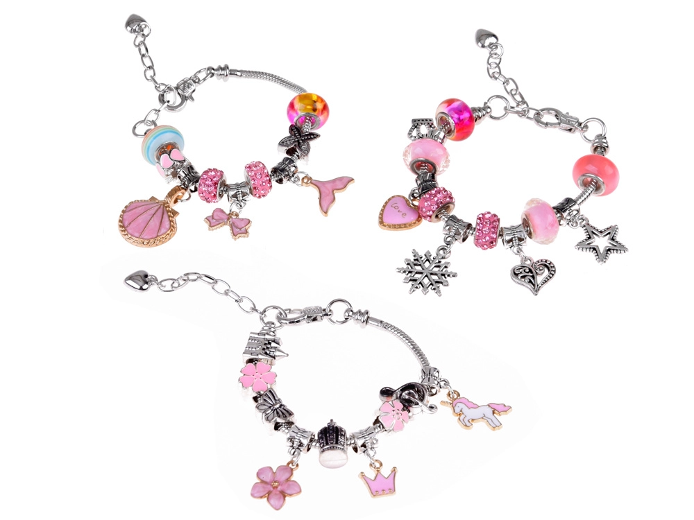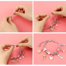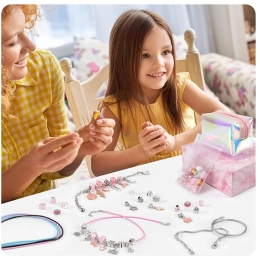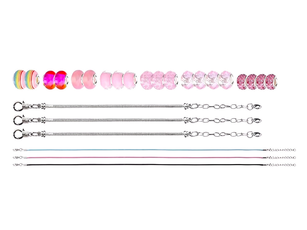 Izveidojiet unikālas rokassprādzes tieši savam stilam. Šis komplekts sudraba toņos ar rozā un zeltainiem akcentiem piedāvā daudzveidīgu pērlīšu un piekariņu klāstu, lai katrs rotājums būtu oriģināls. Radošais process vienlaikus attīsta sīko motoriku, pacietību un radošumu – jēgpilna izklaide.