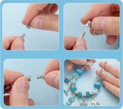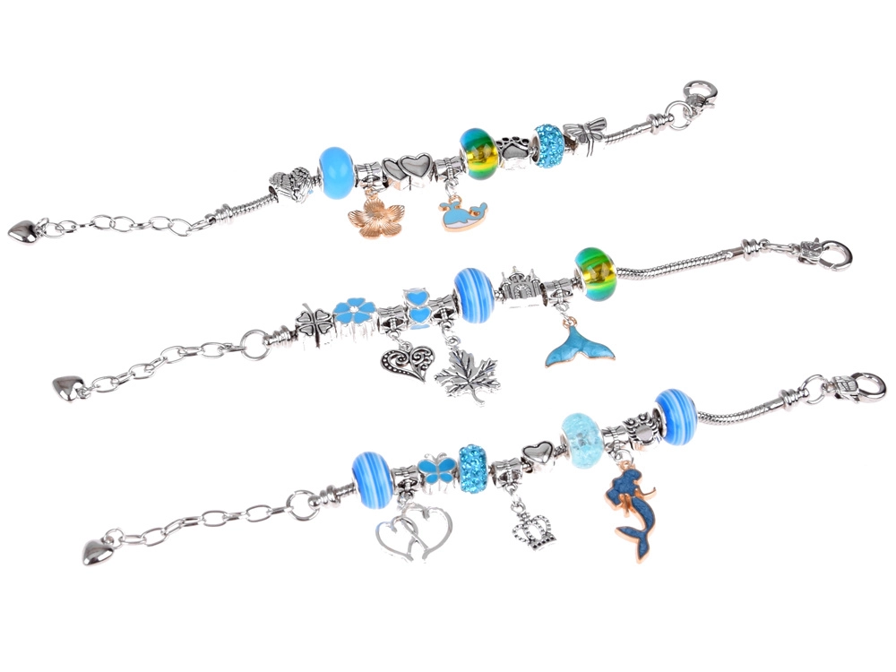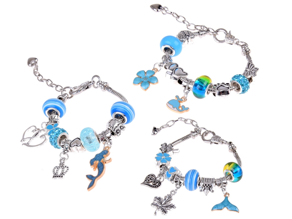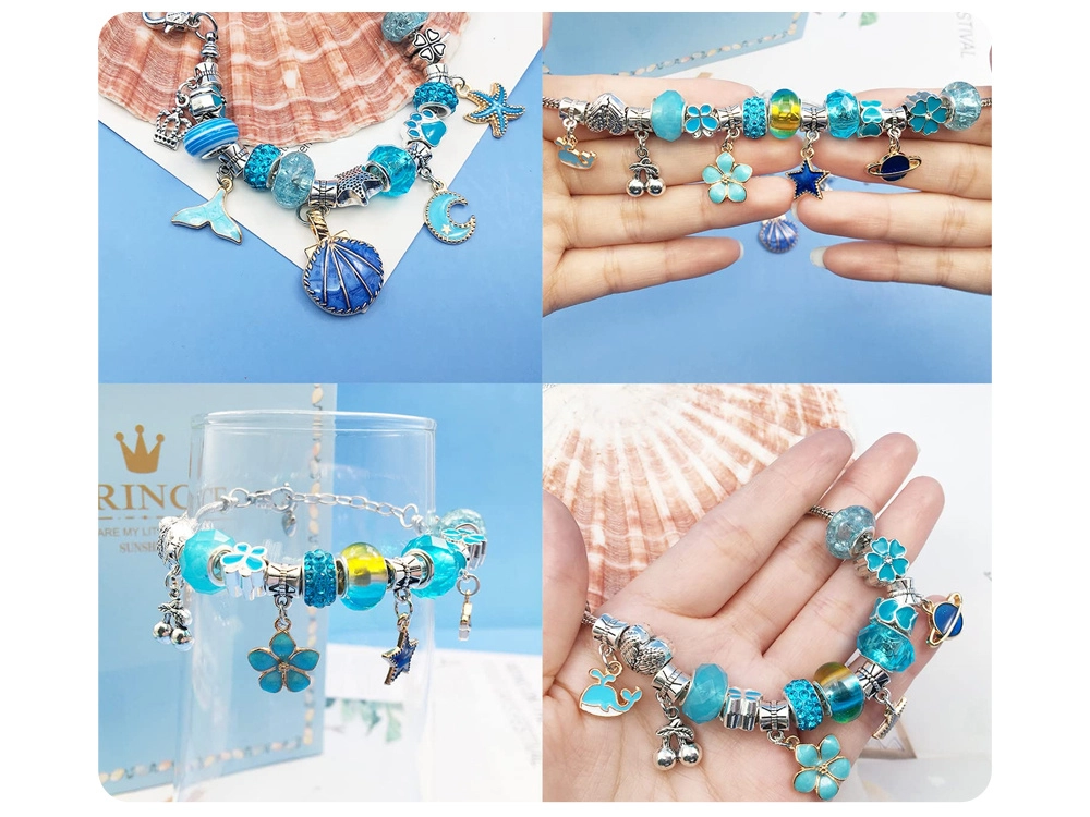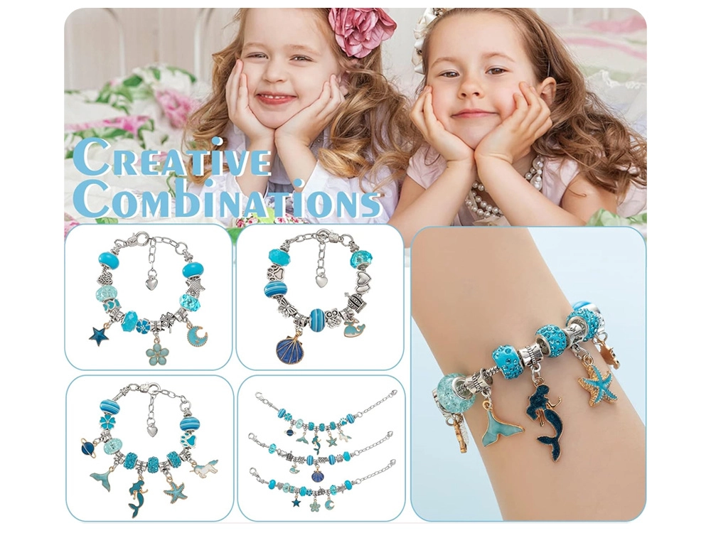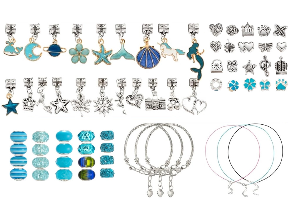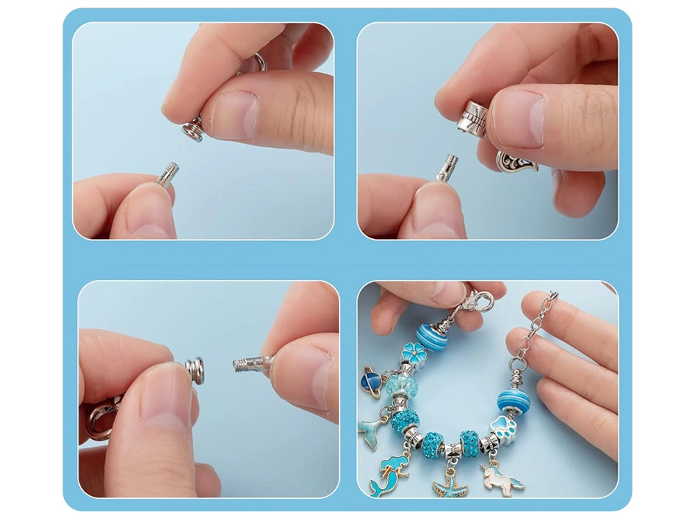 Šis radošais komplekts piedāvā plašu komponentu izvēli ērtai vēršanai un savu aksesuāru salikšanai. Metāla aproces, regulējamas ķēdītes un vaskotas aukliņas, papildinātas ar dekoratīvām pērlītēm un piekariņiem (charms), ļauj izveidot rotas tieši pēc jūsu fantāzijas – no jūras motīviem līdz sirsniņām un ziediem.