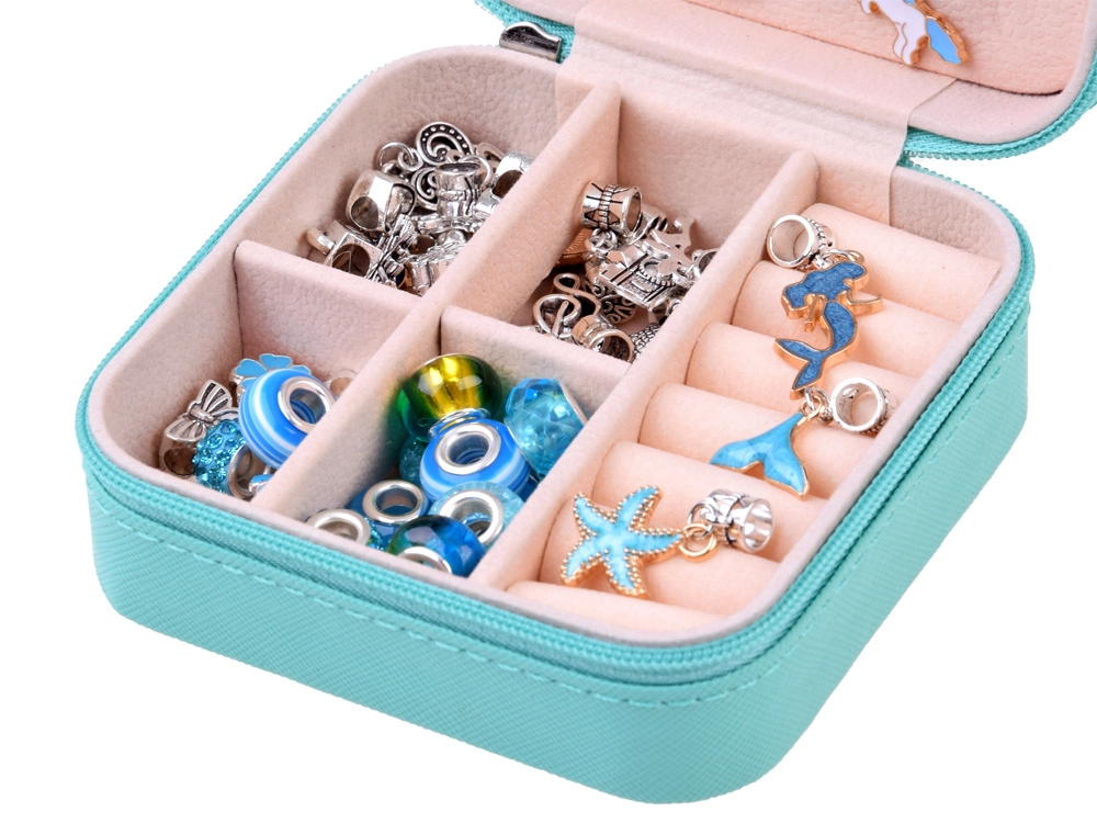 Mīkstās nodalījumu ieloces sargā pērlītes, piekariņus un gatavās aproces. Lieliski piemērota bērnu istabai un ceļošanai.