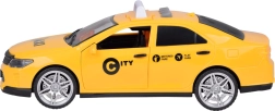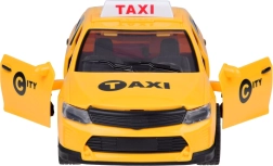 Dzeltenais bērnu taksometra auto piedāvā pilsētas auto realistisku izskatu, gaismas un skaņas efektus un abpus atveramas durvis. Pateicoties gumijas neslīdošajiem riteņiem braukšana ir vienmērīga un klusa. Lieliski veicina fantāziju, koordināciju un ceļu satiksmes noteikumu apgūšanu.