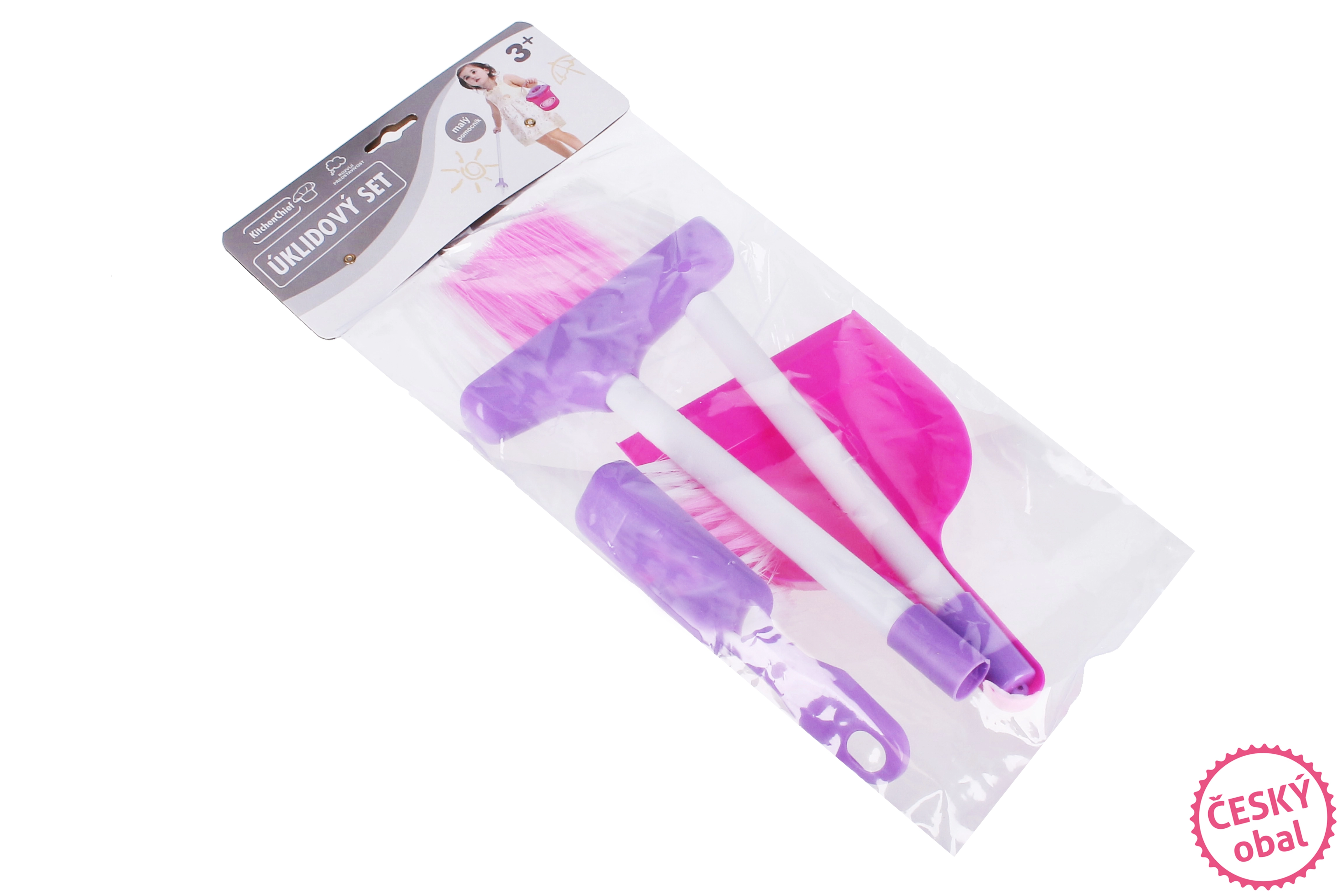 Praktisks bērnu uzkopšanas komplekts sastāv no 3 daļām – liekšķeres, birstītes un saliekamā grīdas birstes. Izgatavots no izturīga plastmasas rozā-baltā krāsā, ideāli piemērots mājas spēlēm un smalkās motorikas attīstībai. Saliekamā birste viegli ietilpst mazākā rotaļlietu kastē.