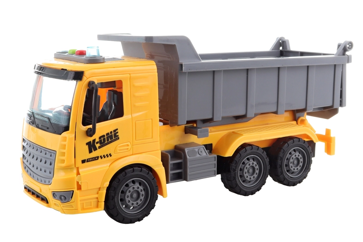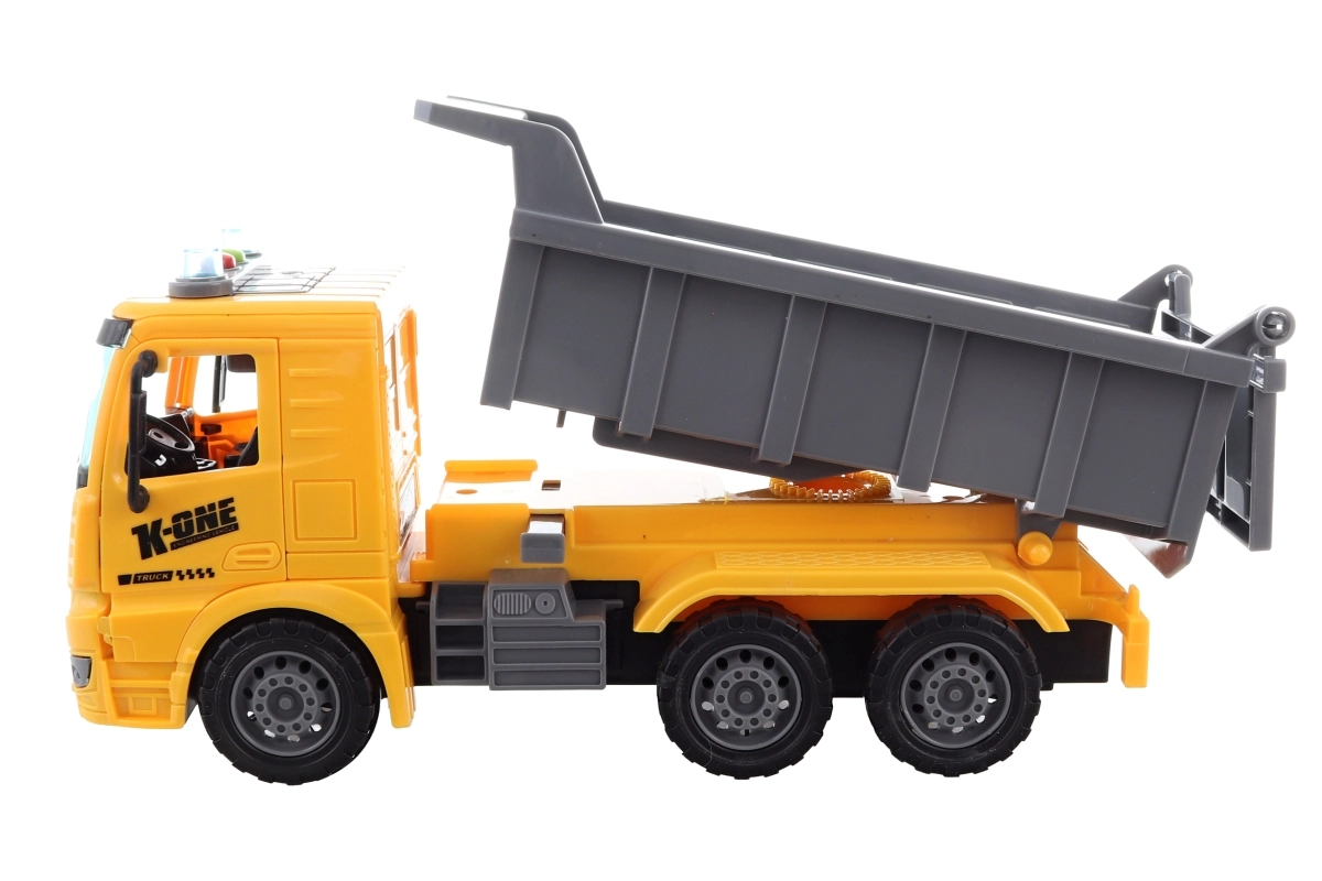 Atklājiet būvniecības tematikas rotaļu prieku ar šo bateriju pašizgāzēju. Modelis izceļas ar koši dzeltenu kabīni un pelēku noliecamo kasti, kas bērniem īpaši patiks.