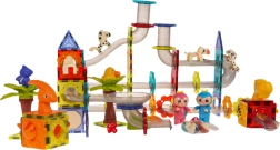 Šis košais magnētiskais konstruktors ar ZOO un dinozauru tematiku sniedz bērniem stundām ilgu radošu izklaidi. Ar caurspīdīgām detaļām, tuneļiem un slīdkalniņiem viņi izveidos savu bumbiņu trasi un attīstīs sīko motoriku, loģisko domāšanu un telpisko iztēli. Izturīgie magnētiskie savienojumi notur konstrukciju kopā, vai tā būtu vienkārša tornīte vai sarežģīts parks ar šķēršļiem.