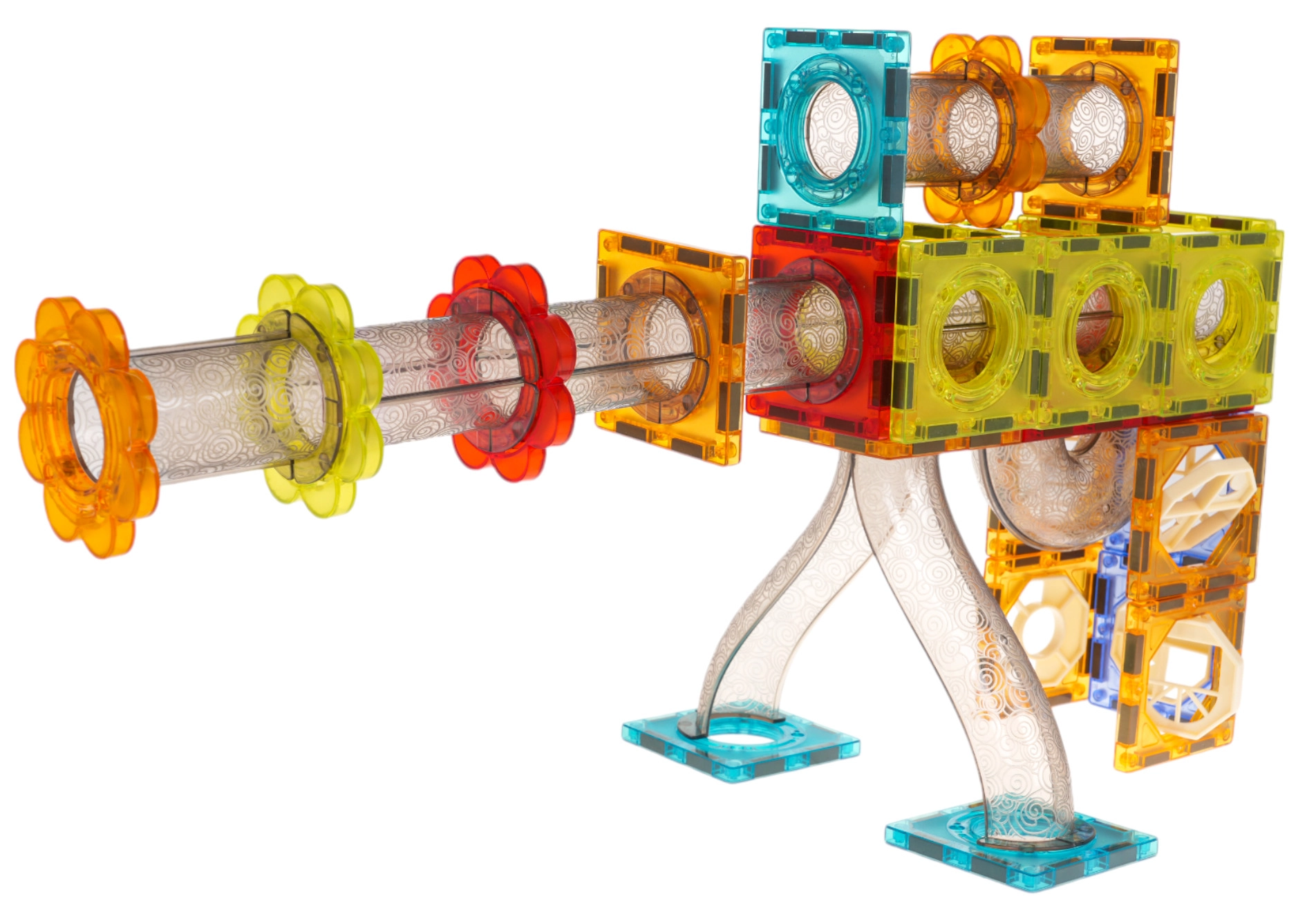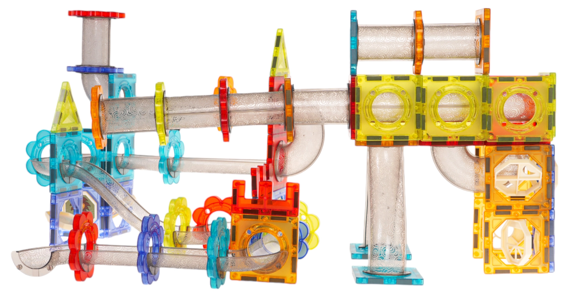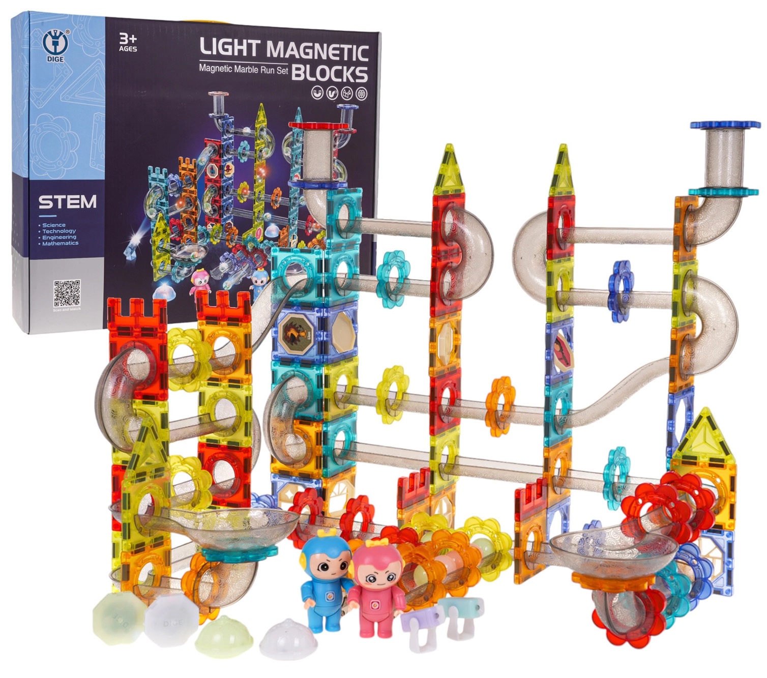 Šis radošais magnētiskais konstruktors bērniem no 3 gadu vecuma attīsta sīko motoriku, loģisko domāšanu un iztēli. Pateicoties iebūvētajiem magnētiem, kvalitatīva, gluda plastmasa elementi viegli un stingri savienojas, ļaujot ātri celt augstas un stabilas 3D konstrukcijas un garas bumbiņu trases.