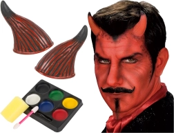 Komplekts ir ideāls Helovīnam, karnevāliem vai tematiskiem vakariem. Ar šo komplektu varat radīt gan biedējošu, gan iespaidīgu tēlu, kas piesaistīs uzmanību. Papildus ragiem un krāsām tajā ir arī mākslīgās asinis velnišķīgā tēla noslēgumam.