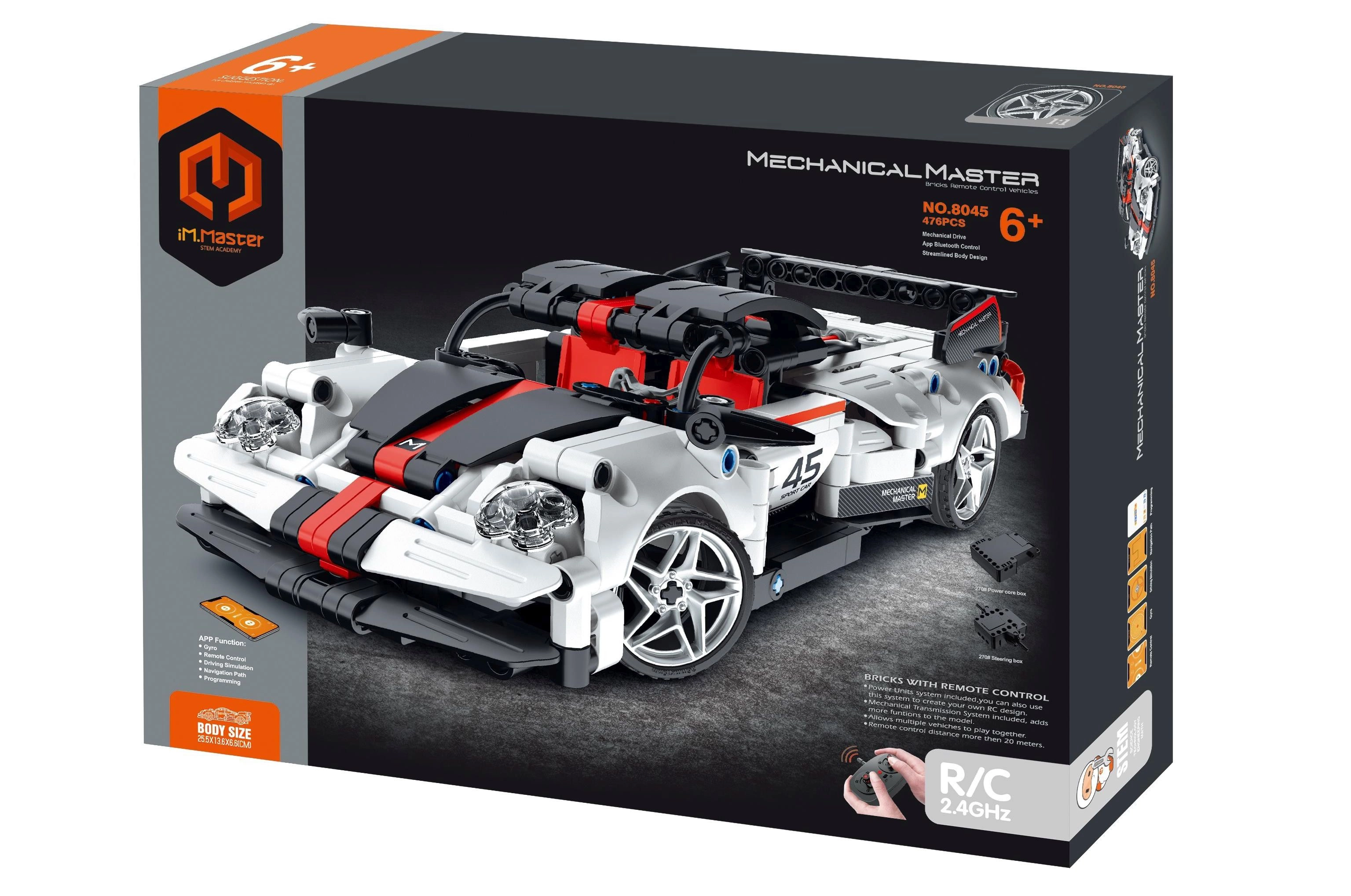 Salieciet savu sacīkšu auto no 476 detaļām. Pēc salikšanas to var vadīt ar RC pulti vai ar mobilās lietotnes palīdzību. Lietotne piedāvā vairākus vadības režīmus: standarta, žestu/pozicionēšanas, stūres simulācijas, navigācijas un programmēšanas. Konstruktors darbojas 2.4GHz frekvencē un tam ir 20 m darbības rādiuss.