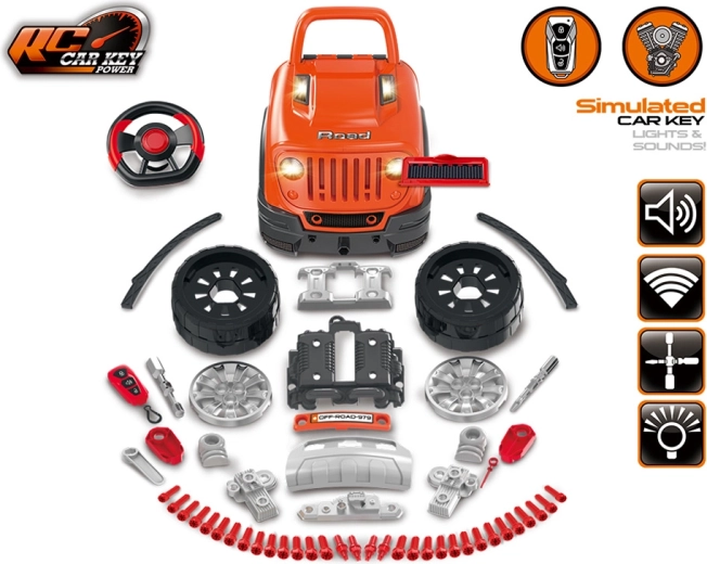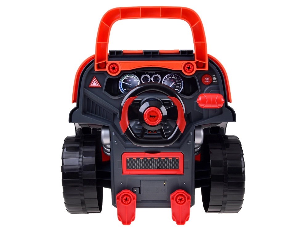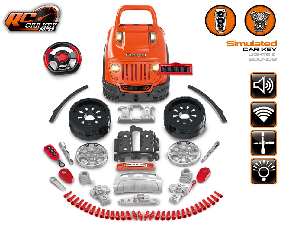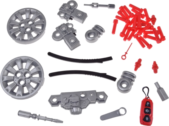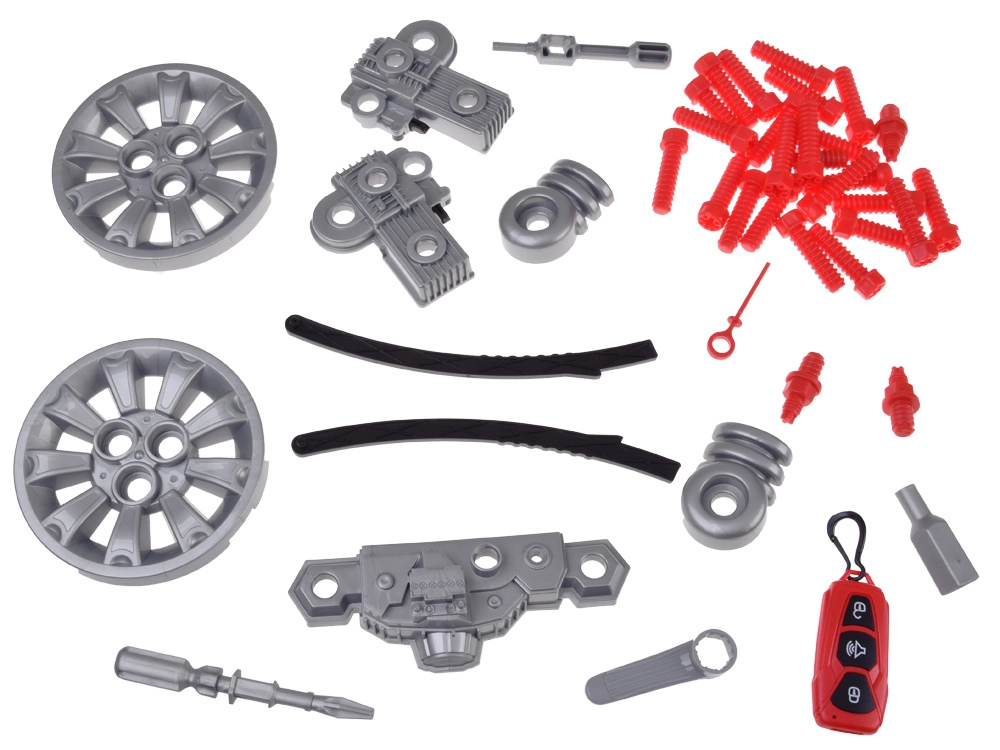 Komplektā ir bagātīgs piederumu klāsts: skrūves, skrūvgriezis ar imbusatslēgas uzgali, 4 virzienu instruments, eļļas mērstienis un filtrs, numura zīmes plāksnīte un balsti auto “pacelšanai”. Pagriežams stūres rats ar darbīgu signālu un pārnesumu sviru sniedz vēl vairāk izklaides.