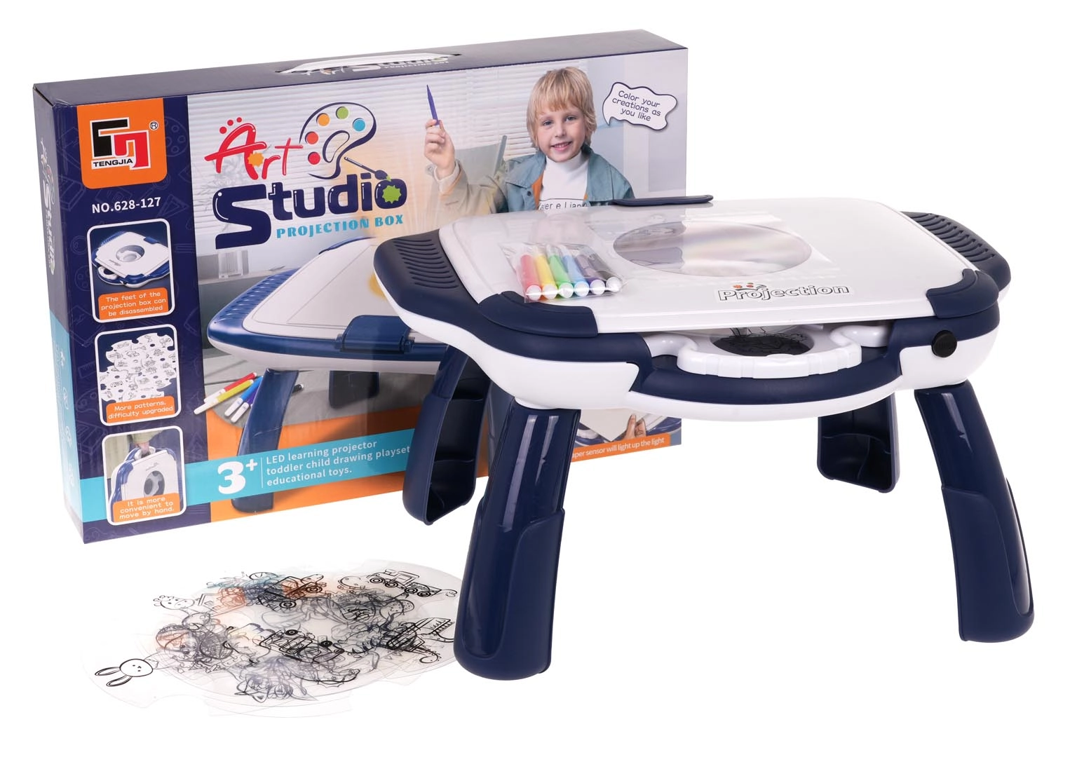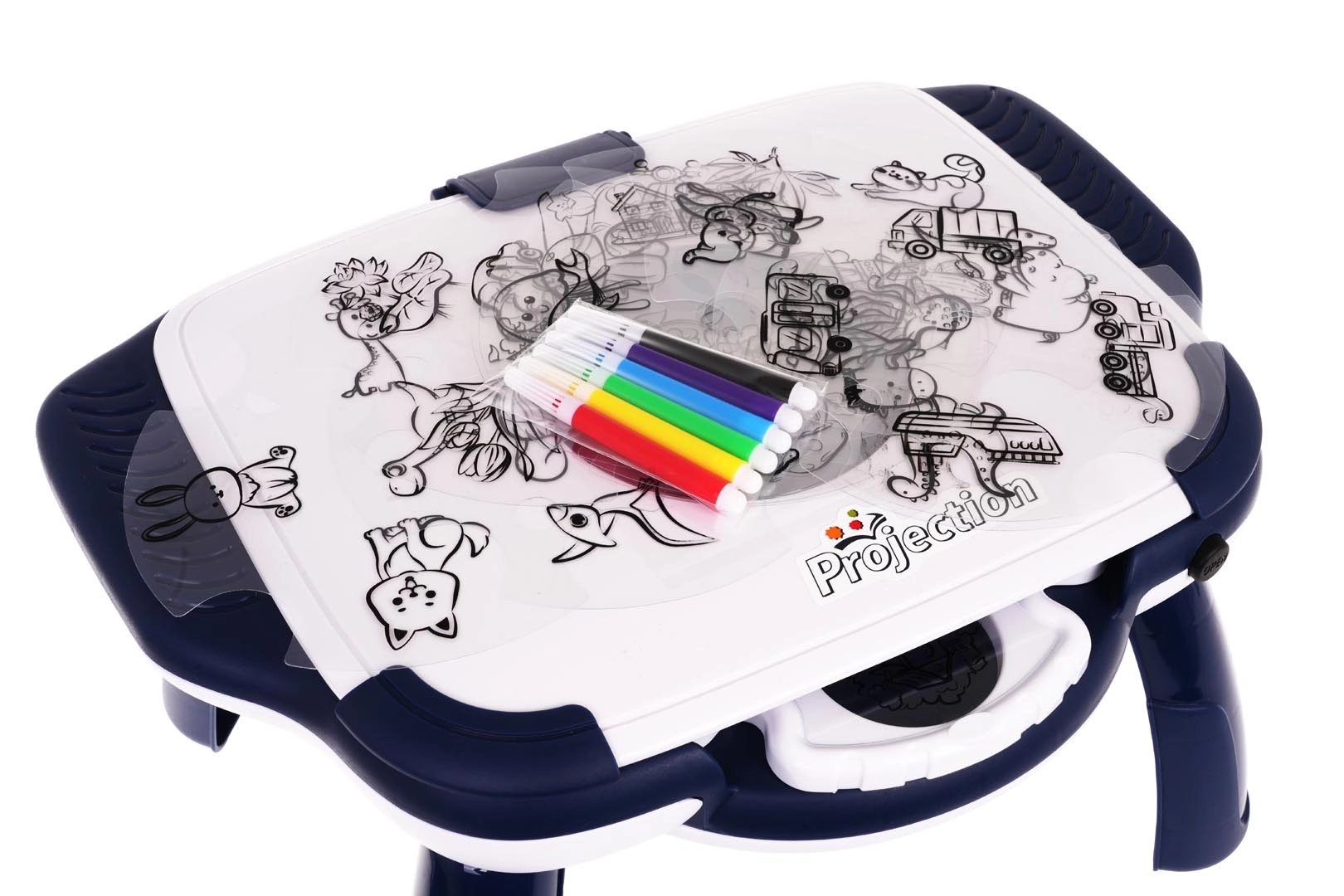 Projicējošais zīmēšanas galdiņš ir lielisks veids, kā bērniem atvieglot pirmos soļus radošajā pasaulē. Pateicoties 12 diskiem ar 4 slaidiem katrā, iespējams izvēlēties desmitiem attēlu – no dzīvniekiem un dinozauriem līdz transportlīdzekļiem, mājām un augiem. Attēls tiek projicēts tieši uz zīmēšanas virsmas, un bērns to var vienkārši pārzīmēt.