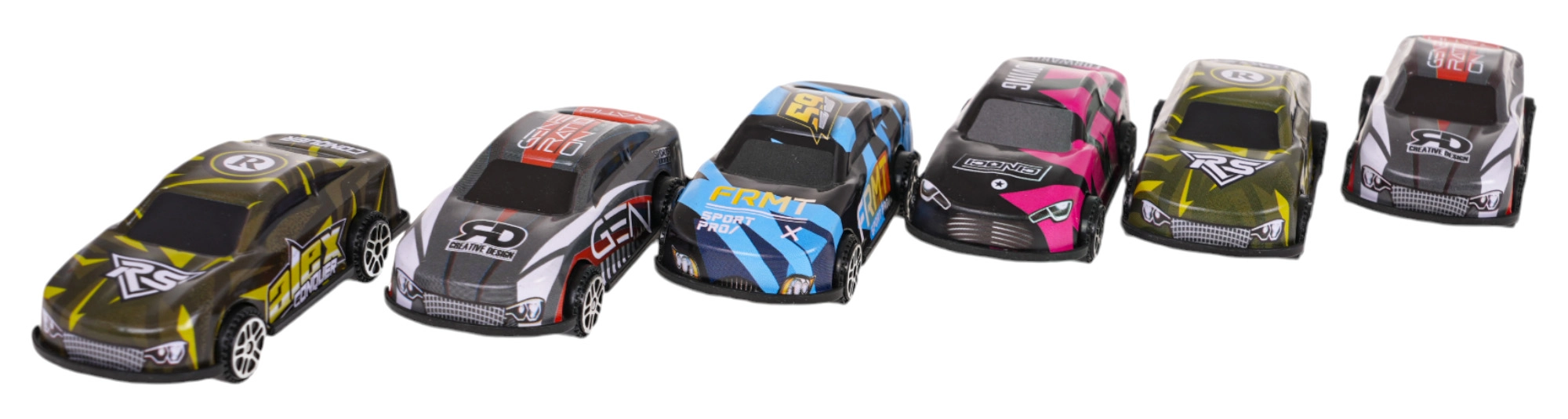 Komplektā sešas detalizētas automašīnas ar metāla virsbūvi un aerodinamisku dizainu, gatavas sacīkstēm.