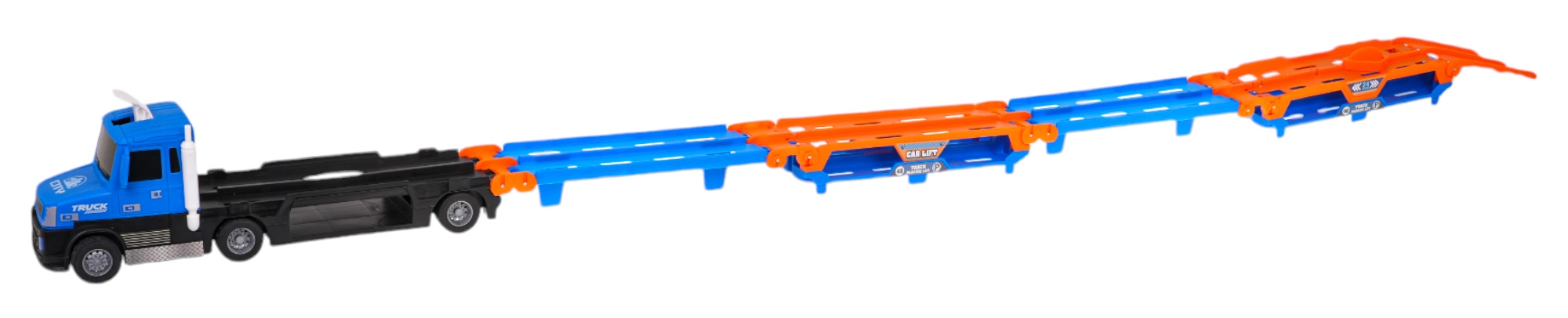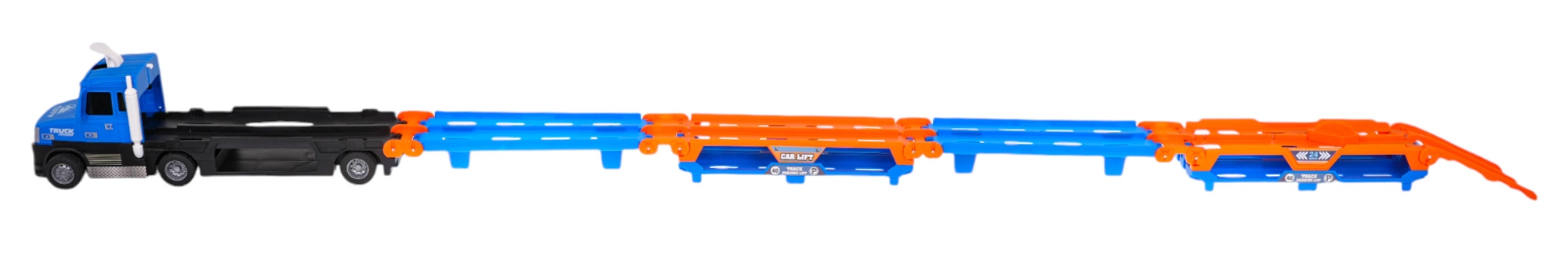 Atverot kravas auto, tas veido divlīmeņu trasi līdz pat 140 cm garumā, ideāli piemērotu sacīkstēm ar iekļautajām mašīnītēm.