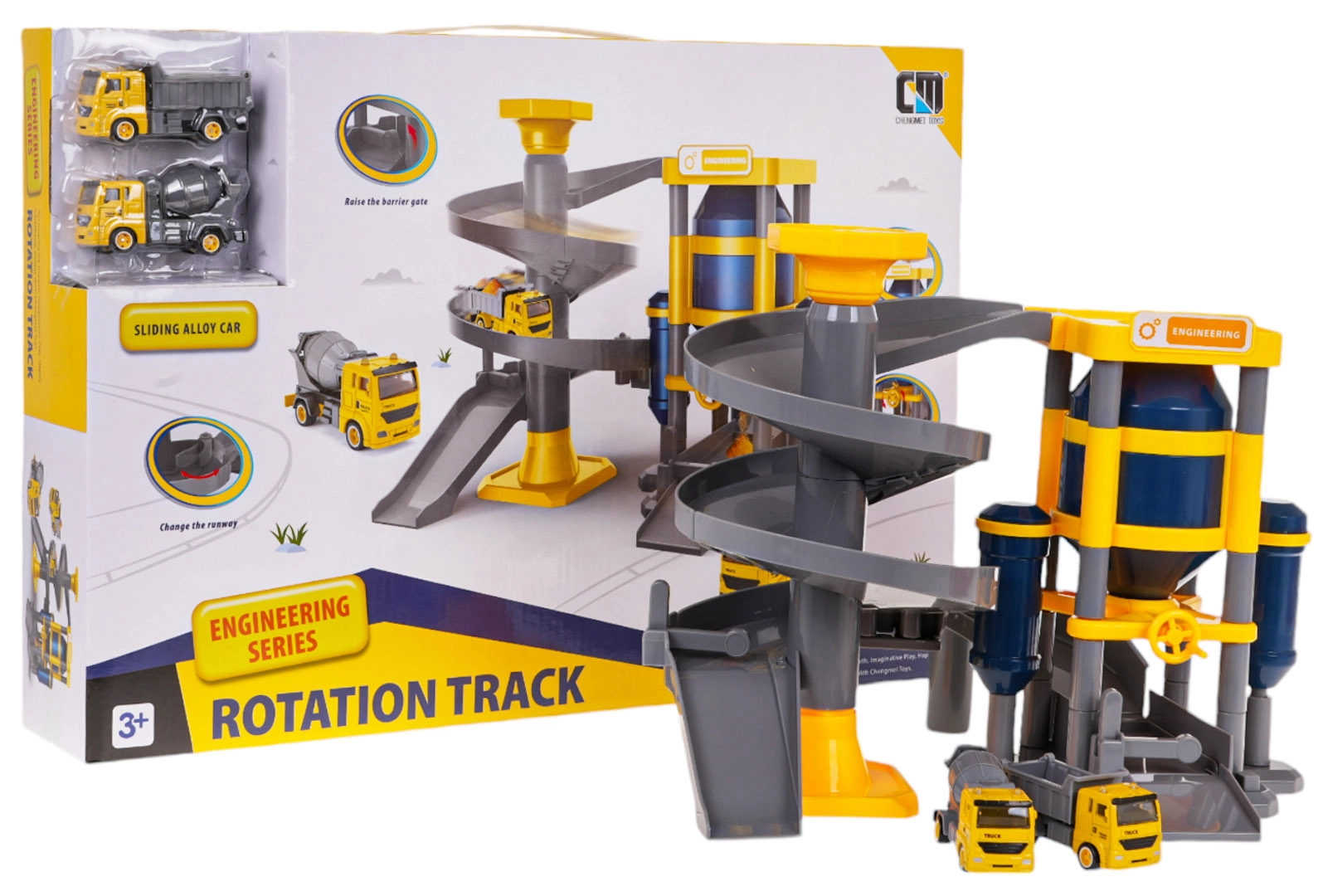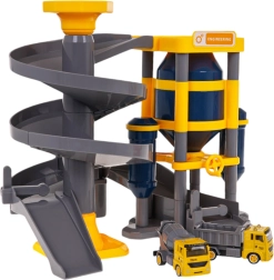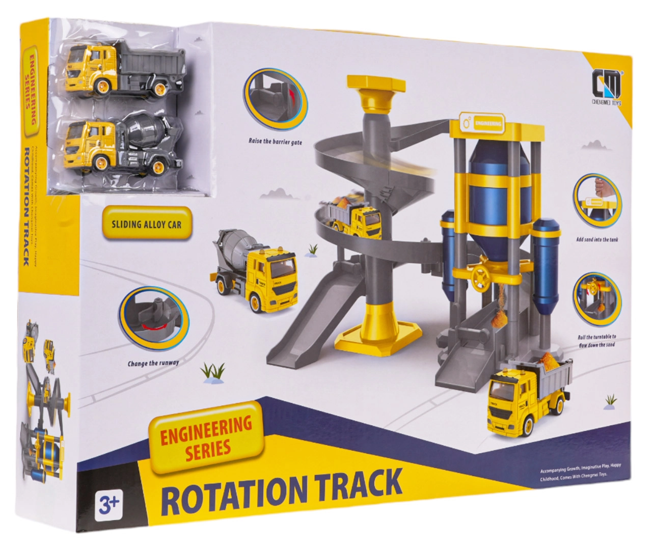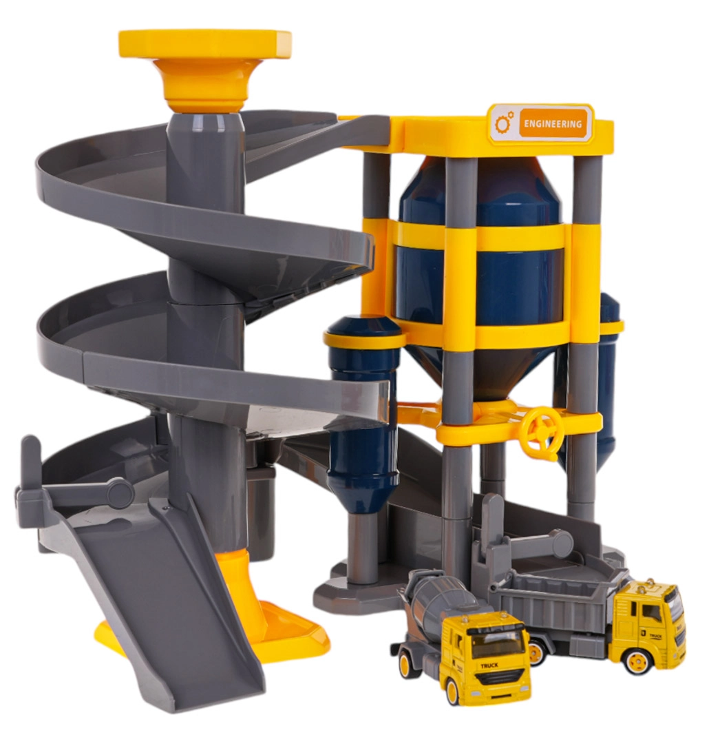 Celtniecības trase ar piederumiem ietver silosu, slidkalniņus un celtniecības automašīnas, piemēram, betona maisītāju un pašizgāzēju, kas bērniem ļauj simulēt reālus būvprocesus. Pateicoties kvalitatīvam plastikātam un labi izstrādātām detaļām, komplekts ir izturīgs un drošs mazajiem būvniekiem.