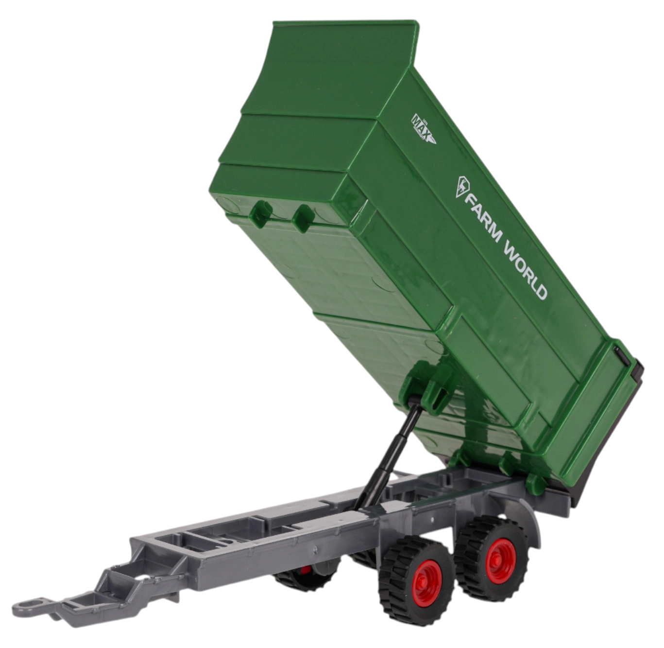 Traktors ir aprīkots ar atvienojamu piekabi, kuru var manuāli pacelt un nolaist, nodrošinot lielisku rotaļu pieredzi.