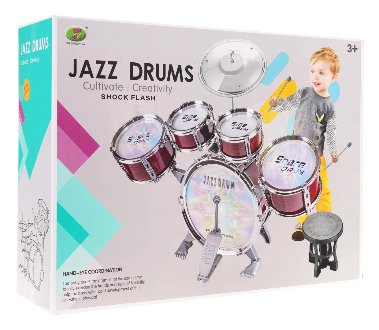 Izbaudiet lielisku izklaidi ar šo lielo bērnu bungu komplektu ar apgaismojumu, kas paredzēts bērniem no 3 gadu vecuma. Komplektā ir piecas bungas un viens šķīvis, padarot to par ideālu rotaļlietu mazajiem mūzikas entuziastiem, kuri vēlas iemācīties atšķirt skaņas un trenēt dzirdi.