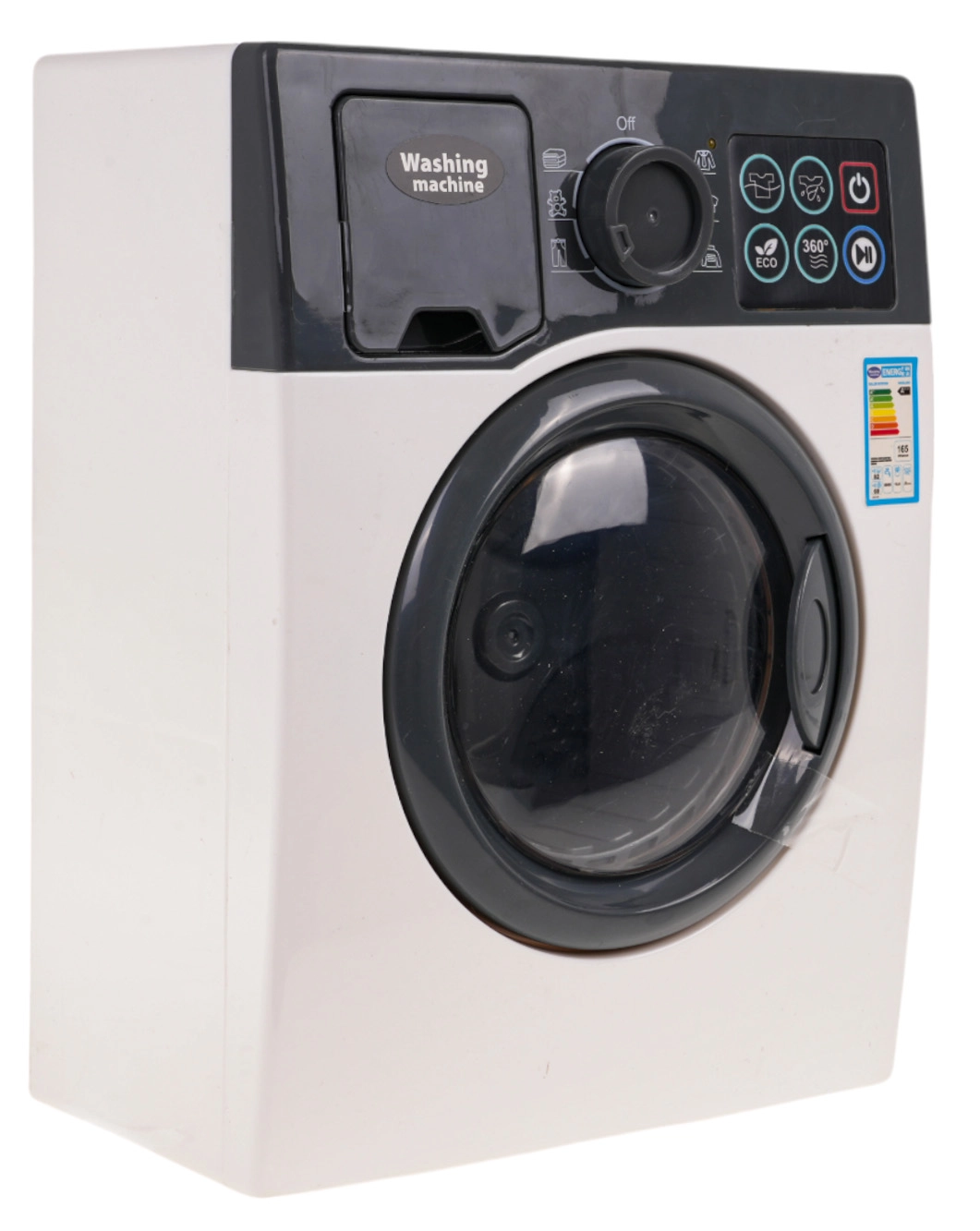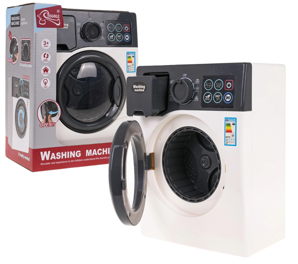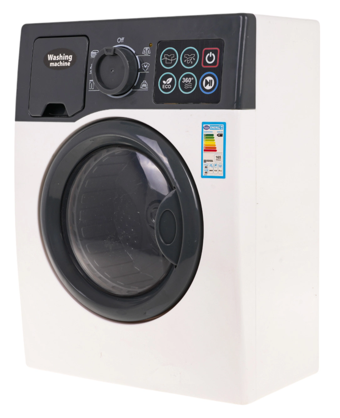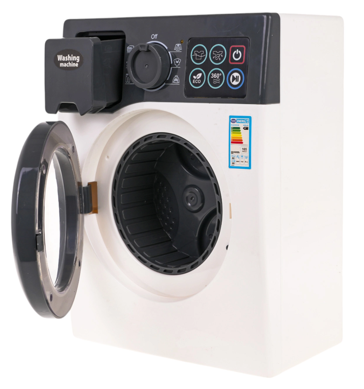 Šī lielā bērnu veļas mašīna ticami atdarina īstu sadzīves tehniku un ļauj bērniem “mazgāt” leļļu drēbes bez ūdens izmantošanas. Vadība notiek ar pogām un grozāmu kloķi, katra programma atskaņo atšķirīgas mazgāšanas, centrifugēšanas un ūdens novadīšanas skaņas. Integrēta LED diode piešķir spēlei vēl lielāku reālismu.
