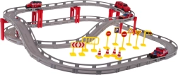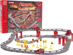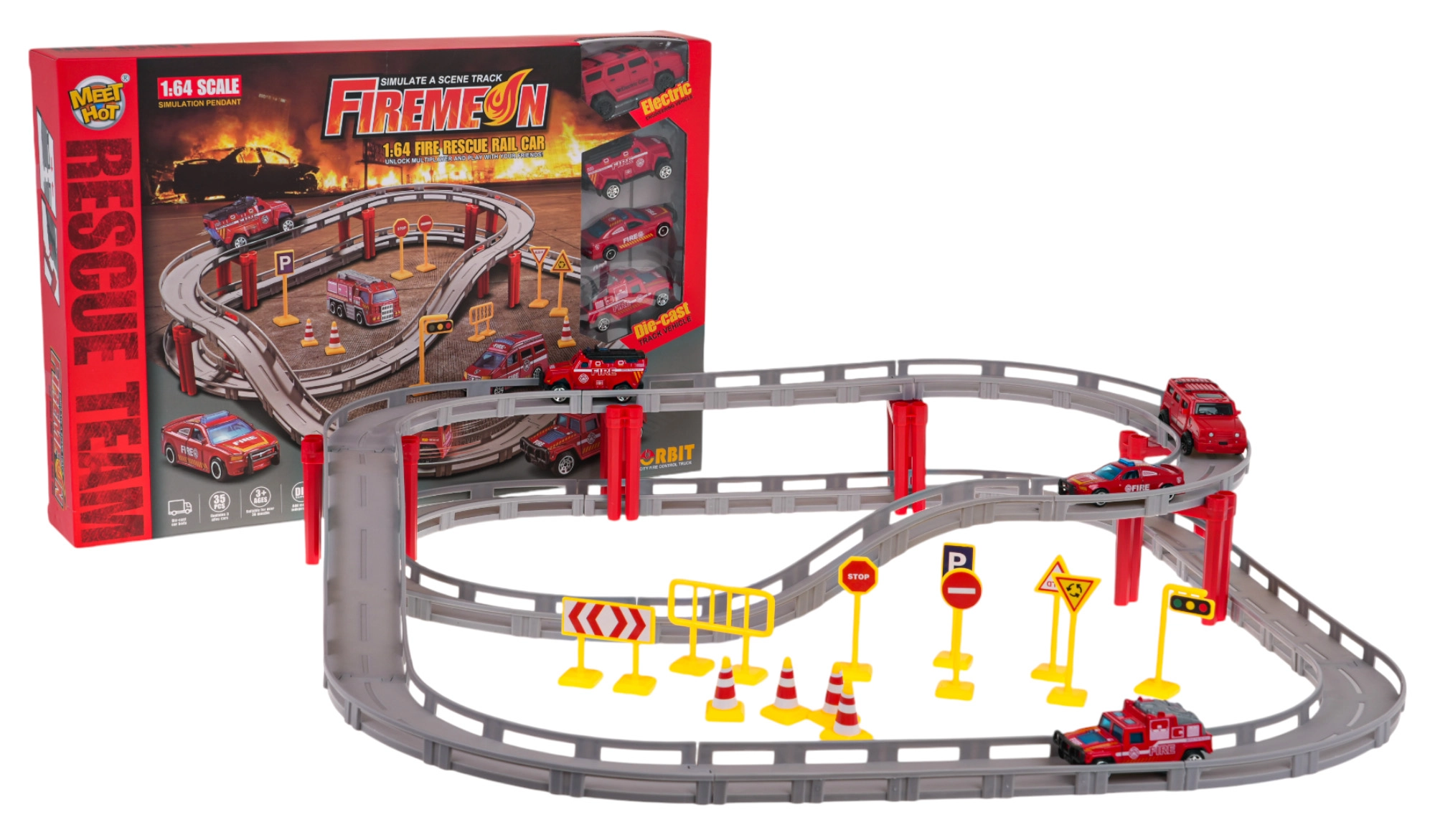 Sacīkšu trase Ugunsdzēsēju versija ir ideāla rotaļlieta mazajiem piedzīvojumu meklētājiem. Komplektā ir daudz elementu ugunsdzēsēju darba simulācijai un dinamiskas braukšanas pieredzei, tostarp četri ugunsdzēsēju transportlīdzekļi.