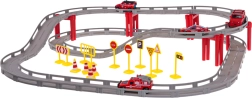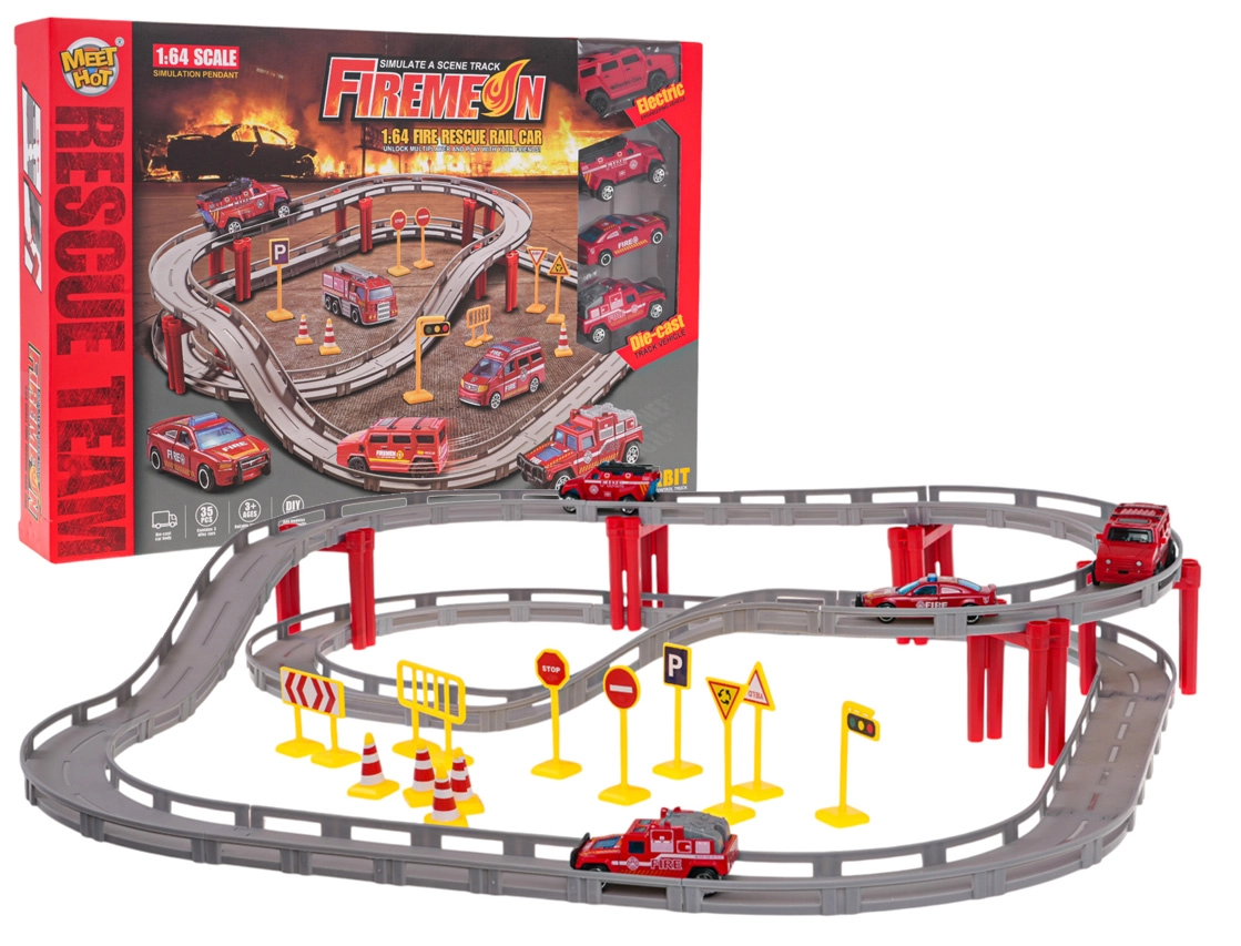 Sacīkšu trase Ugunsdzēsēju versija ir paredzēta bērniem no 3 gadu vecuma. Šī unikālā trase ietver 35 elementus, kas veido divus trases līmeņus ar taisniem posmiem un līkumiem. Izgatavota no augstas kvalitātes plastmasas, komplekts sola izturību un ilgu kalpošanas laiku.