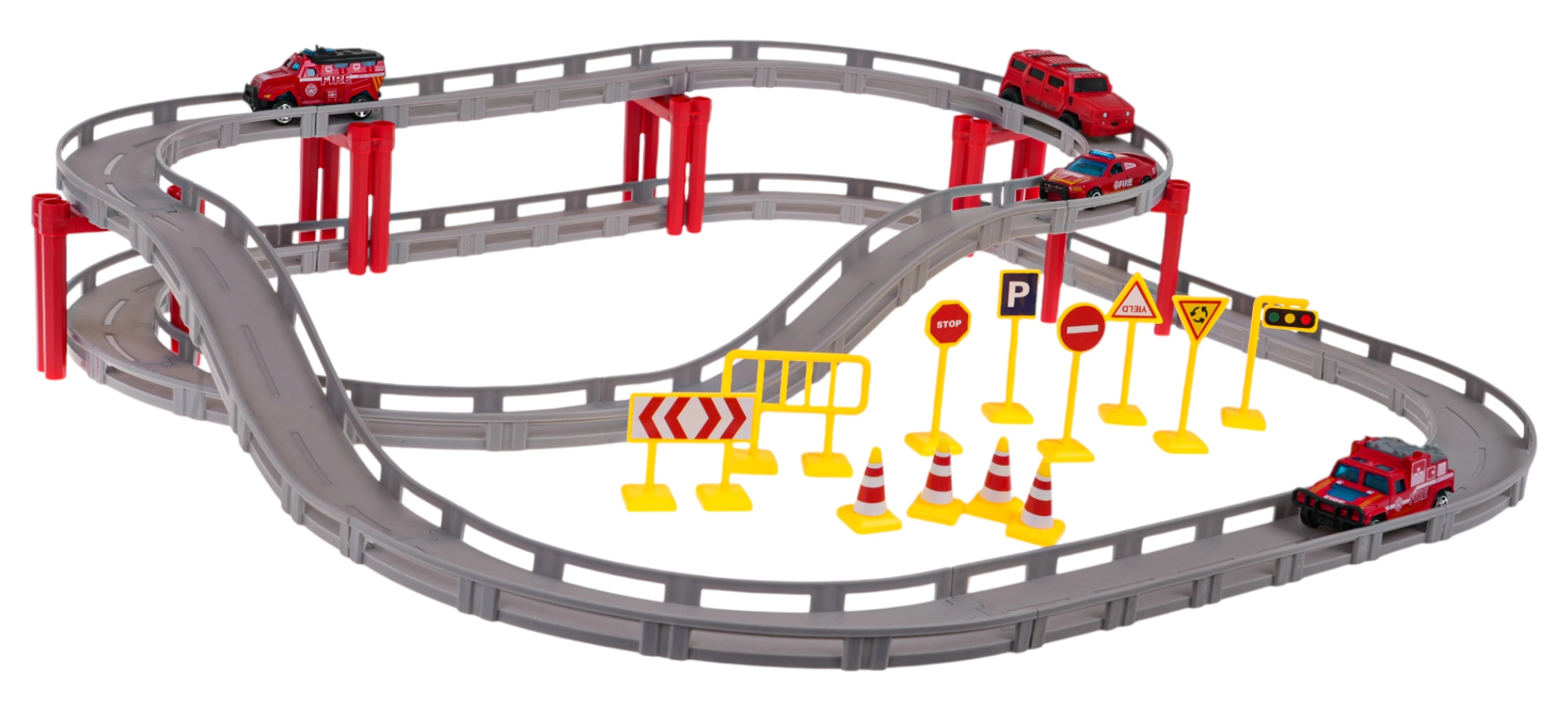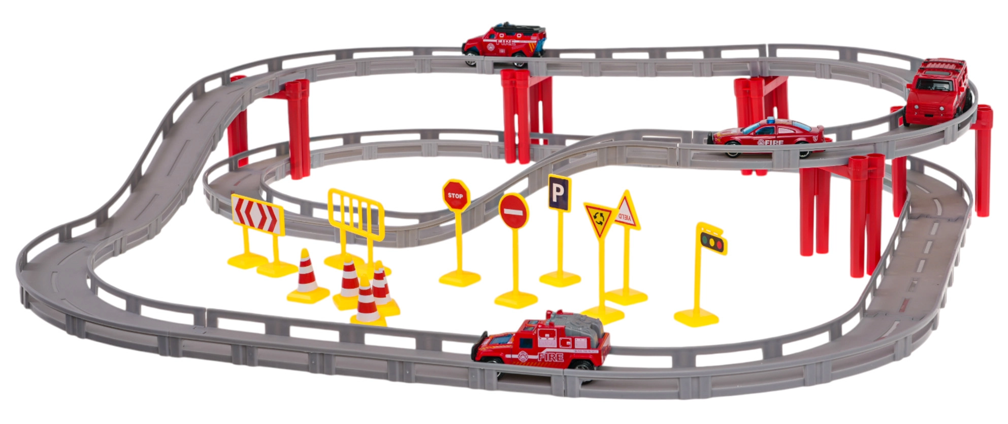 Sacīkšu trase bērniem sniedz iespēju simulēt ugunsdzēsēju izsaukumu. Pateicoties reālistiskiem modeļiem un piederumiem, bērni nonāk pašā notikumu centrā.