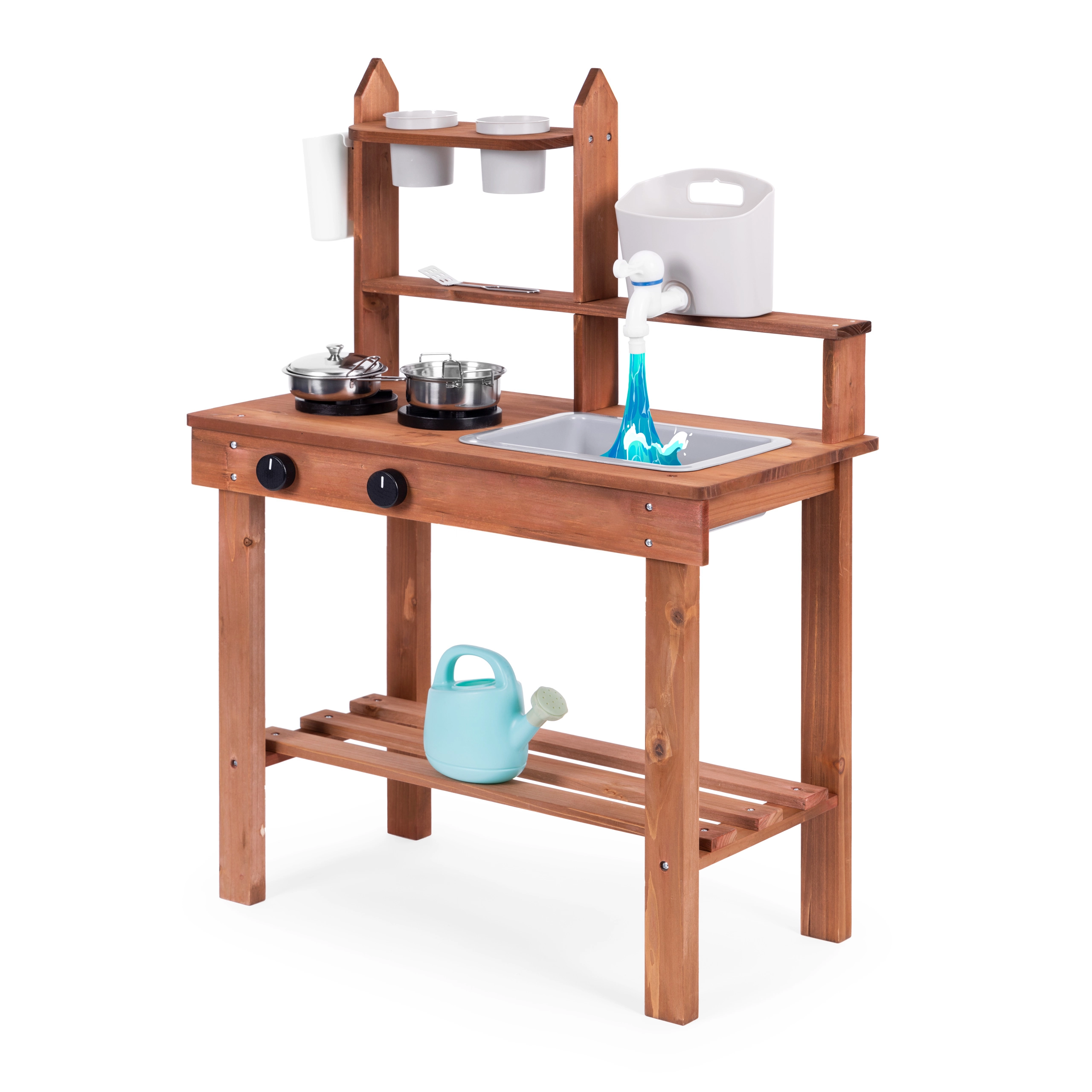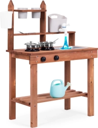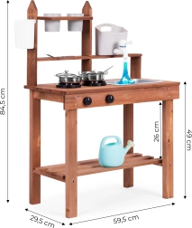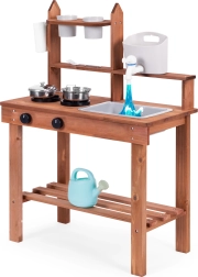 Veicina lomu spēles un ļauj bērniem “gatavot” no smiltīm, zemes vai oļiem. Pārskatāmie plaukti un āķi palīdz turēt traukus pa rokai, savukārt kompaktie izmēri atvieglo izvietošanu arī mazākās telpās.