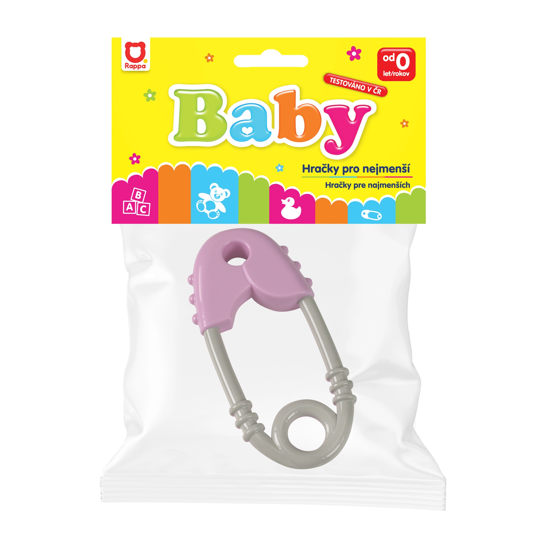 Drošs un krāsains grabulis nodrošina jūsu bērnam izklaidi ar noturīgām krāsām un maigām līnijām bez asām malām.