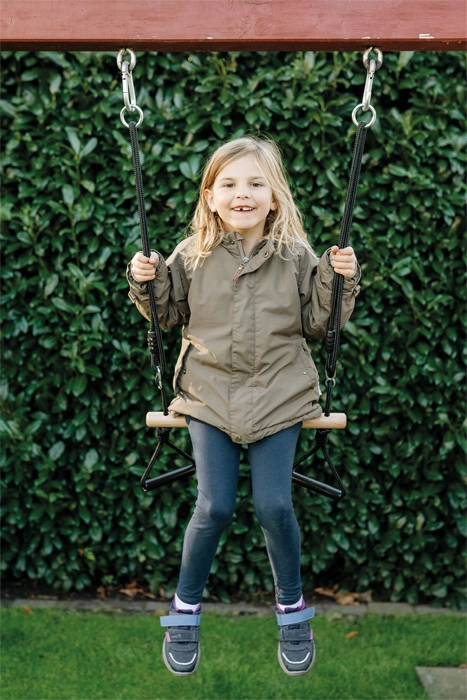 Šīs trapecveida šūpoles apvieno tradicionālo šūpošanās pieredzi ar iespēju veikt vingrošanas vingrinājumus. Pateicoties inovatīvajam dizainam, tās piedāvā vairāk kustību aktivitāšu un prieka. Šūpoļu stienis var kalpot gan kā sēdeklis, gan kā vingrošanas stienis, savukārt vingrošanas rokturi ļauj mazajiem akrobātiem atklāt jaunas kustību iespējas. Piemērotas gan iesācējiem, gan pieredzējušiem lietotājiem.