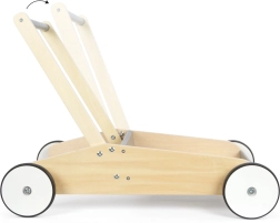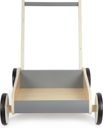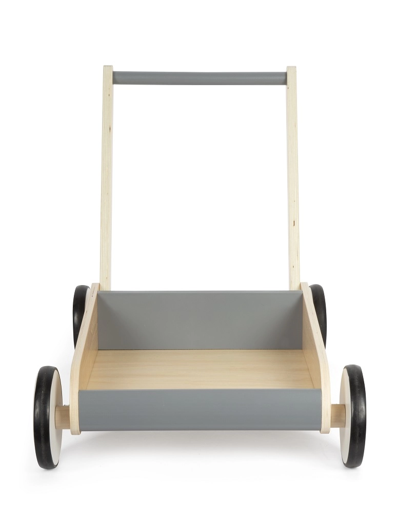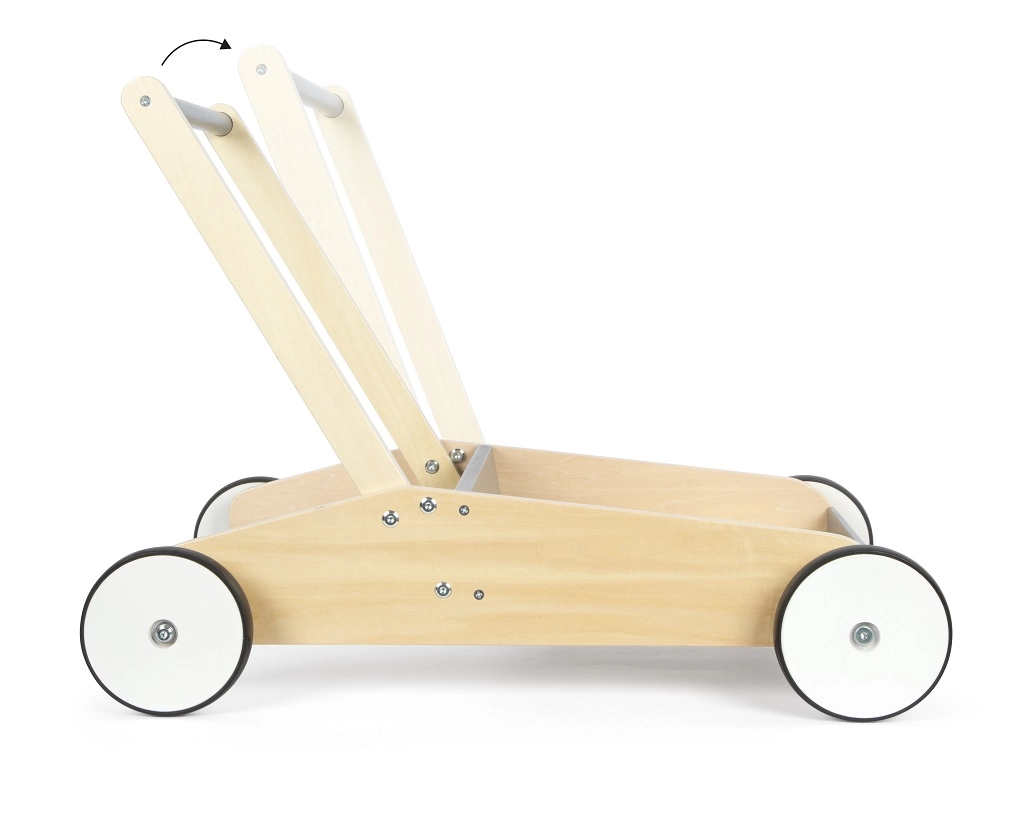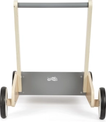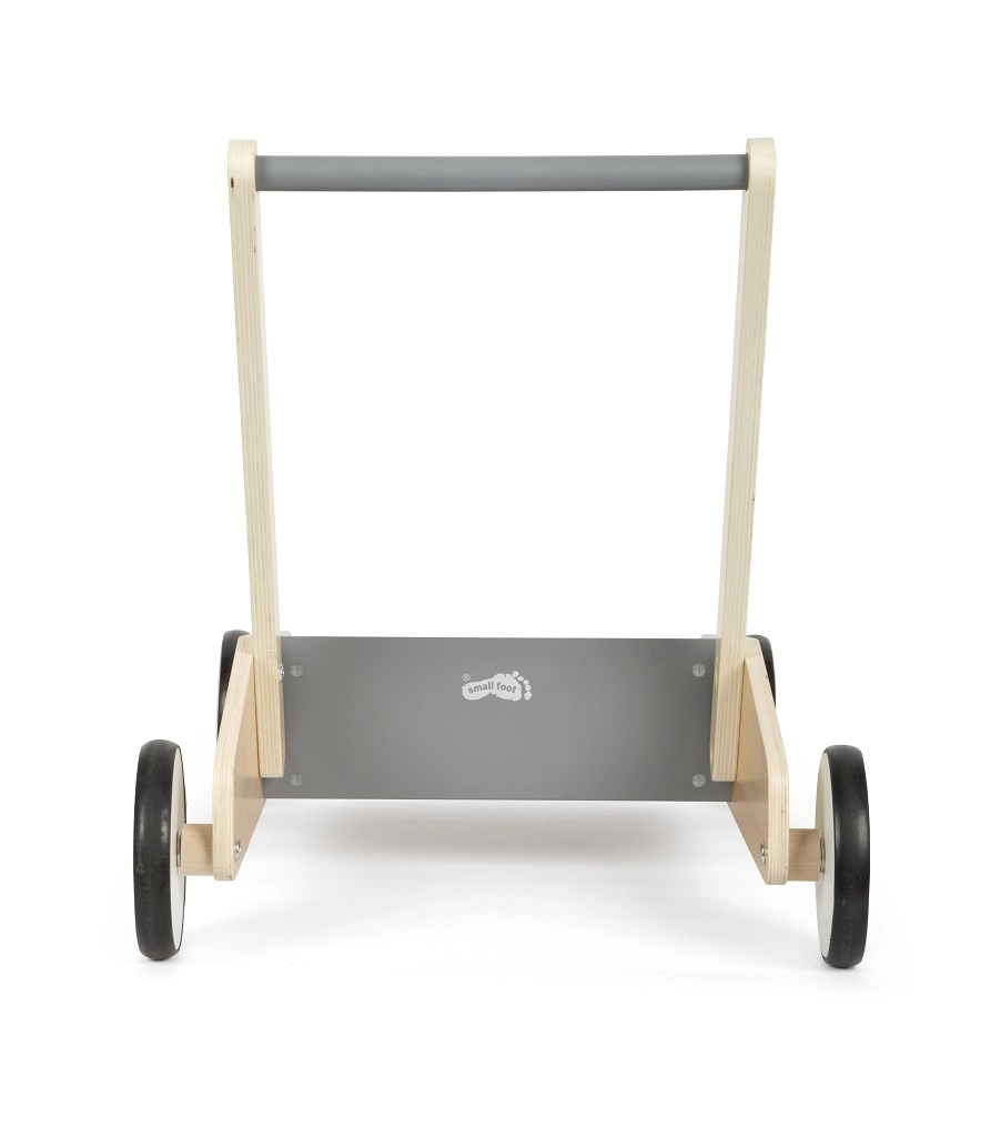Atklājiet uzticamu palīgu pirmajiem soļiem. Izturīga konstrukcija no kvalitatīva laminēta koka apvienojumā ar šīfera pelēkiem elementiem nodrošina pārliecību, drošību un mūsdienīgu izskatu. Noapaļotās malas un gumijotie riteņi ir saudzīgi gan pret bērna rokām, gan grīdām, savukārt bremžu sistēma palīdz uzturēt mierīgu tempu staigāšanas apguvē.