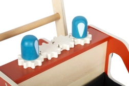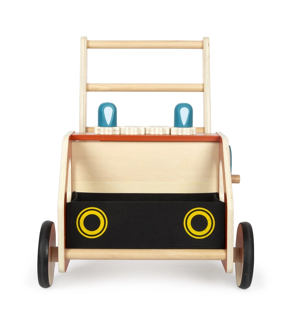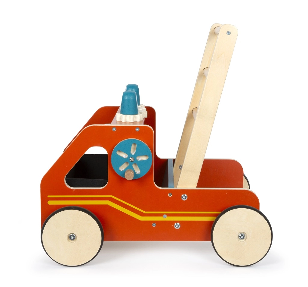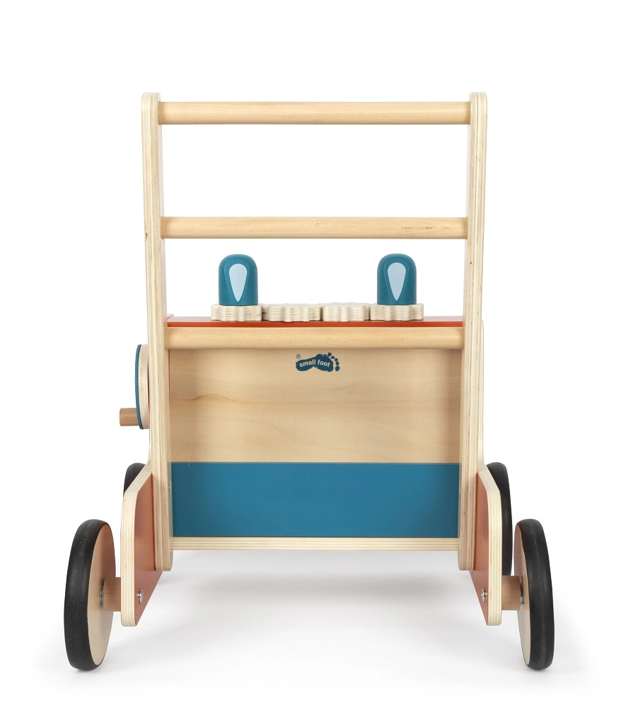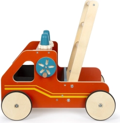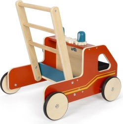 Stilīgs koka staigulis – ugunsdzēsēji no zīmola SMALL FOOT atbalsta pirmos soļus ar izturīgu konstrukciju, bremžu sistēmu un klusiem gumijotiem riteņiem. Interaktīvi elementi, piemēram, zobrati, griežams rats ar kloķi un kustīgas gaismas, attīsta motoriku un koordināciju, kamēr izņemams filca grozs piedāvā praktisku vietu dārgumu glabāšanai.