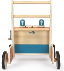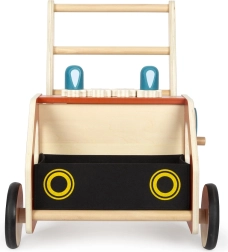 Gumijotie riteņi ir klusi un saudzīgi pret grīdu. Izņemamais filca grozs nodrošina praktisku vietu rotaļlietām un sīklietām.