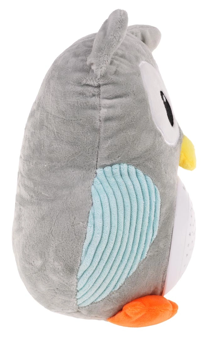 Iebūvētais projektors pūces vēderiņā projicē krāsainas zvaigznītes, kas palīdz radīt mierīgu vidi iemigšanai un atpūtai.