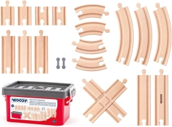 Praktisks komplekts ietver 20 koka sliežu gabalus vilcieniņu trasēm, ievietotus izturīgā plastmasas kastē ērtai uzglabāšanai. Ideāls paplašinājums bērnu vilcieniņiem, piemērots no 3 gadu vecuma un ar CE atbilstību.