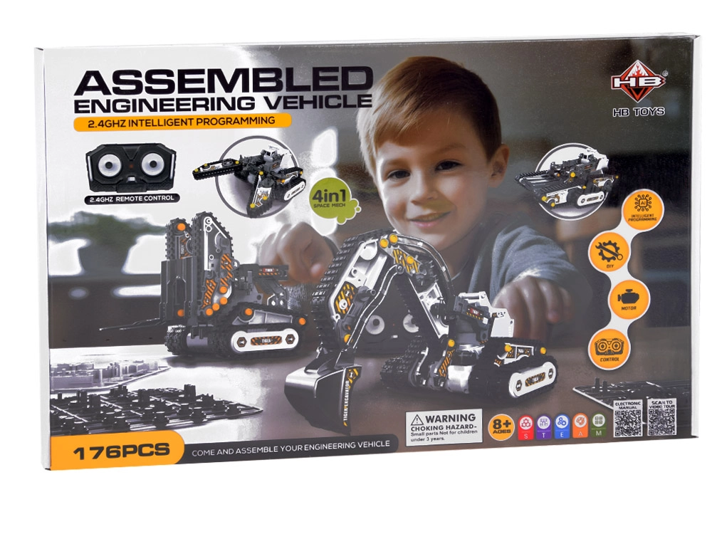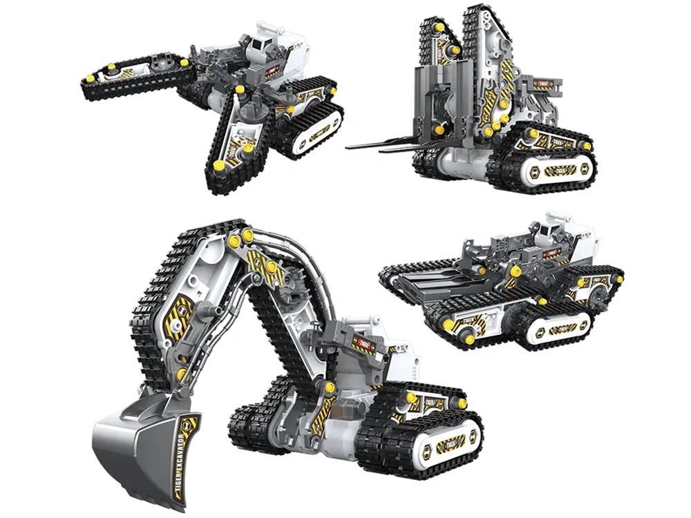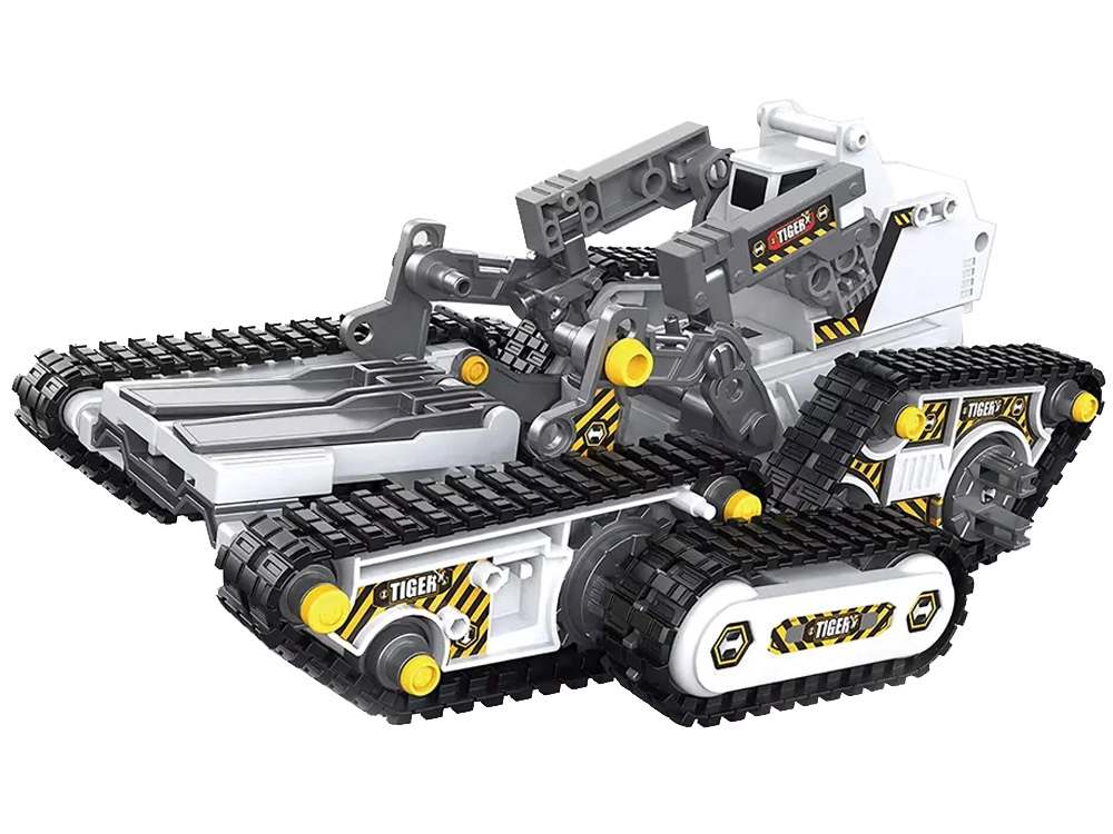 Šis daudzpusīgais konstruktors sniedz bērniem un vecākiem stundām ilgu izklaidi un mācīšanos. No viena komplekta var salikt līdz 4 dažādiem modeļiem – tanku, koksnes novākšanas mašīnu, iekrāvēju un kāpurķēžu būvniecības ekskavatoru. Pievienojot akumulatoru un ievietojot baterijas pultī, modeļi atdzīvojas, un tos var ērti vadīt.