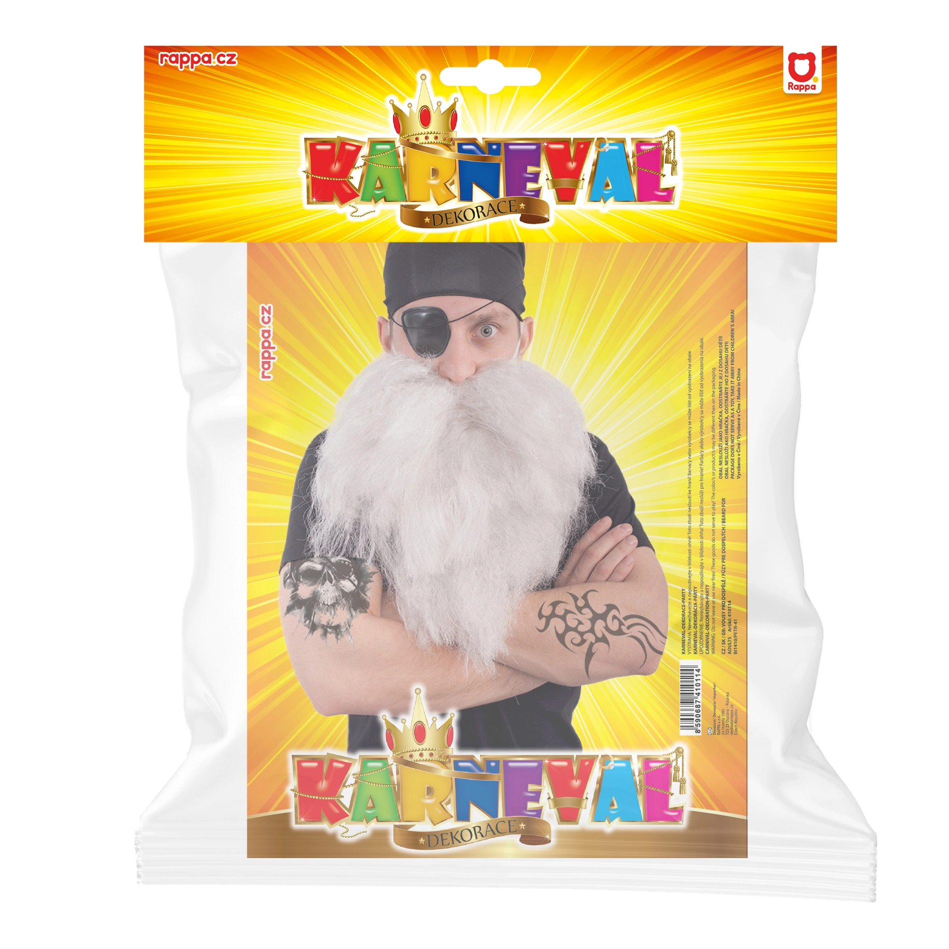 Pārvērtieties par neuzvaramu pirātu dažu mirkļu laikā. Šis universālais aksesuāru komplekts papildinās jebkuru kostīmu un nodrošinās izteiksmīgu un jautru izskatu. Pateicoties garās baltās bārdas, klasiskā acs apsēja un melnā lakata kombinācijai, iegūsiet stilu, kas ir uzreiz atpazīstams.
