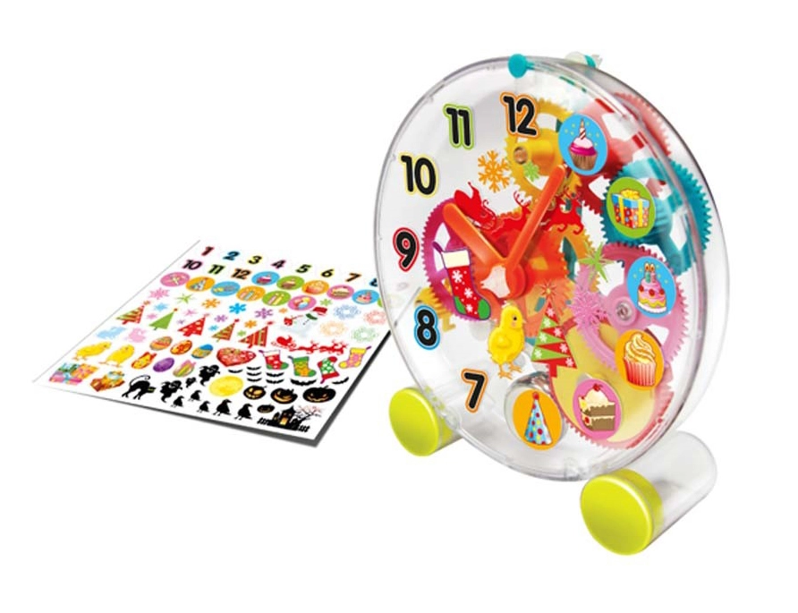 Pulkstenis pēc salikšanas darbojas, izmantojot mehānisku mehānismu, kas ir gan izglītojošs, gan aizraujošs. Komplektā ir dekoratīvas uzlīmes, ar kurām varēsiet pielāgot dizainu savām vēlmēm.
