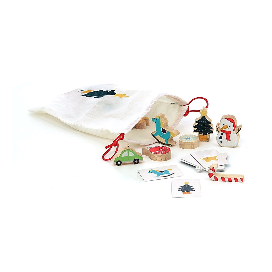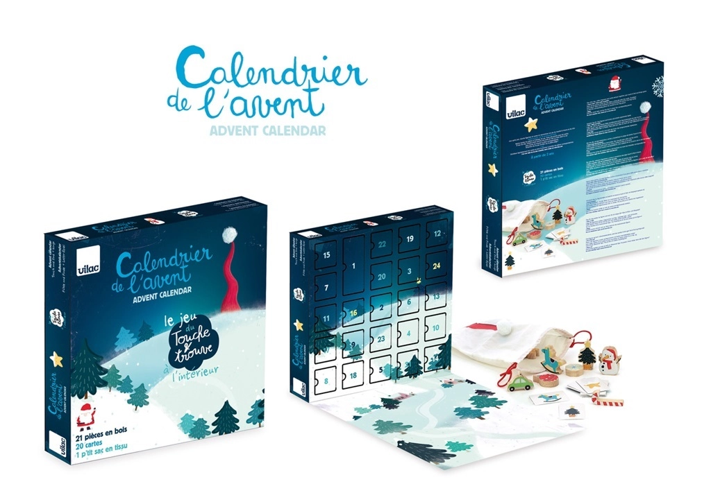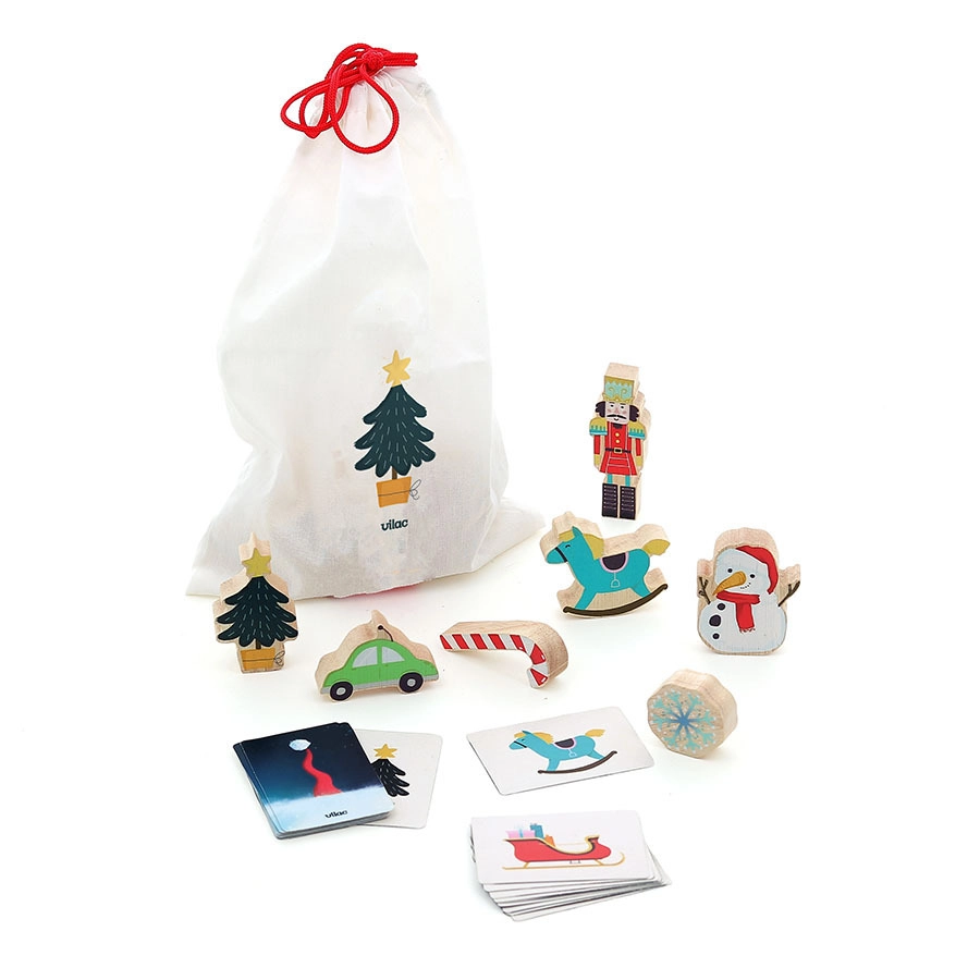 Vilac adventes kalendārs ir ne tikai lieliska izklaide pirms Ziemassvētkiem, bet arī attīsta bērniem svarīgu prasmi – tausti. Ar auduma maisiņā paslēptu koka figūriņu palīdzību bērni trenē savas maņas.