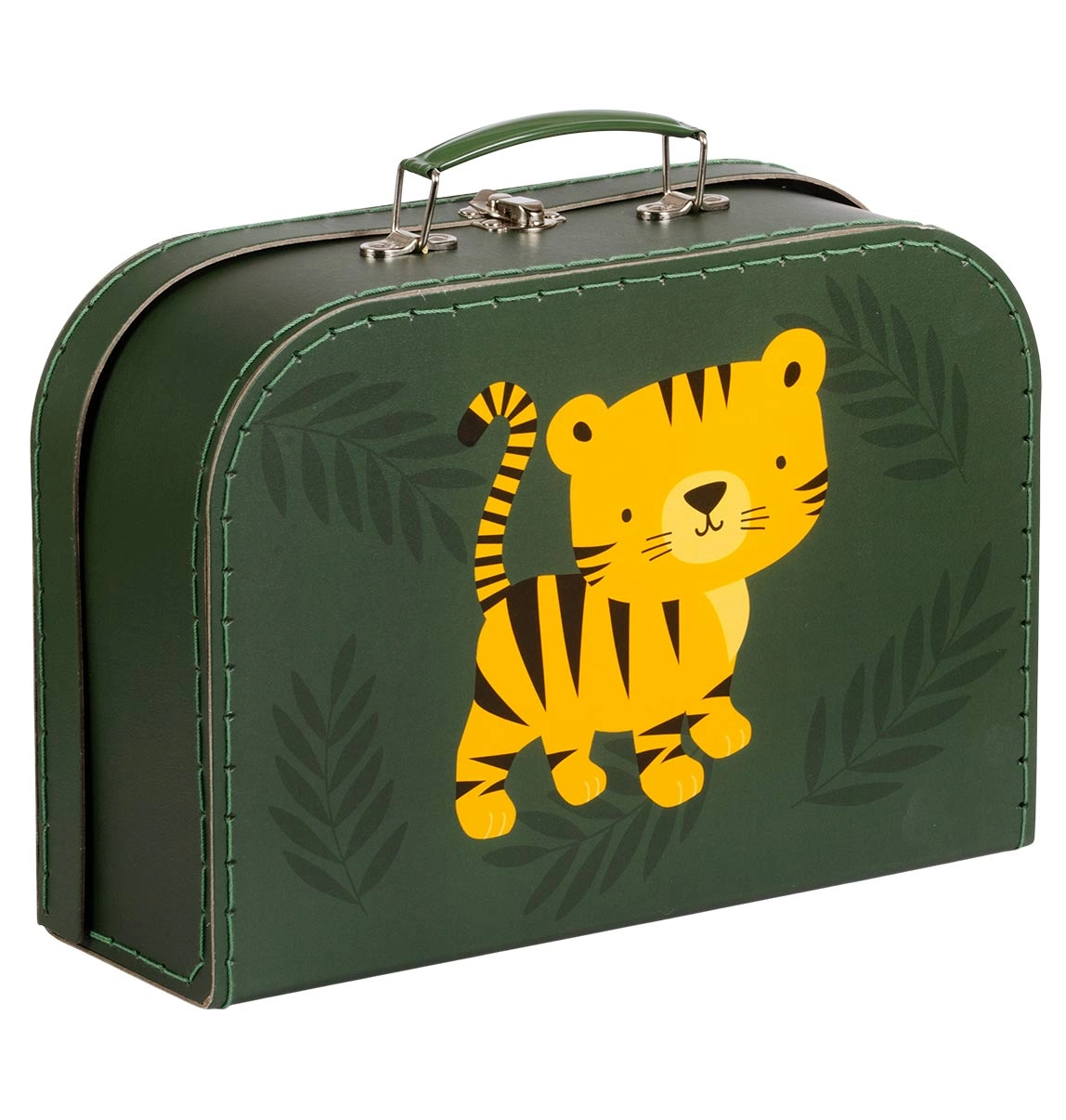 Atklājiet stilīgu un funkcionālu glabātuvi bērnu dārgumiem. Divu koferīšu komplekts ar jautru džungļu tīģera motīvu ir lieliski piemērots bērnistabai, ciemošanās reizēm un ceļojumiem. Pateicoties izturīgajam izpildījumam, tie iztur ikdienas lietošanu un vienlaikus skaisti papildina interjeru.