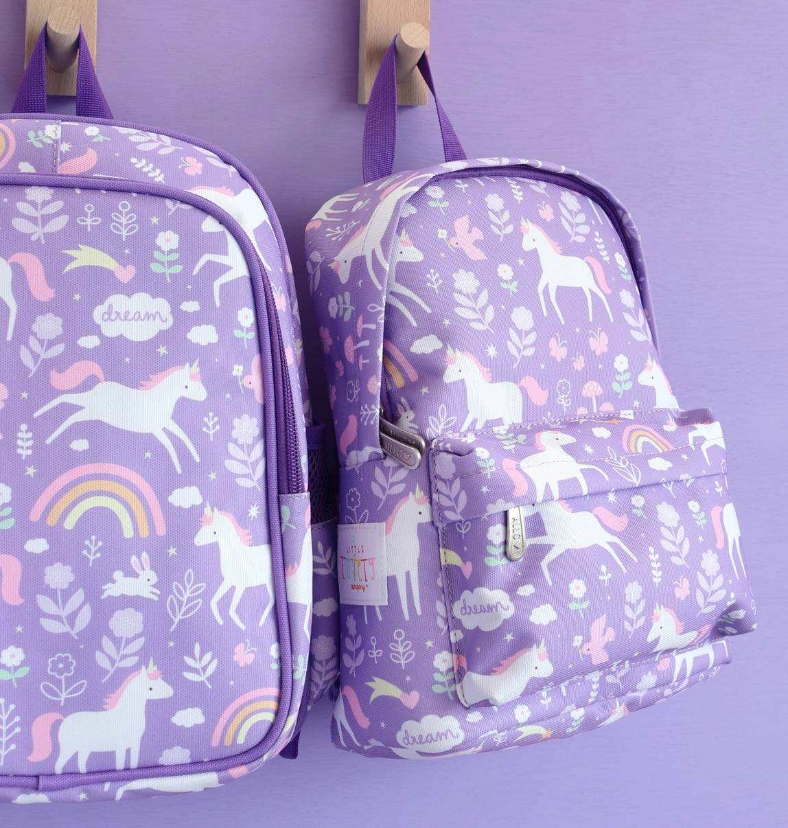 Krūšu siksna palīdz noturēt plecu siksnas vietā, tāpēc mugursoma labāk turas pat skriešanas un rotaļu laikā. Krāsainais apdruka ar vienradžiem un varavīksni padara mugursomu par stilīgu sabiedroto mazajiem piedzīvojumu meklētājiem.