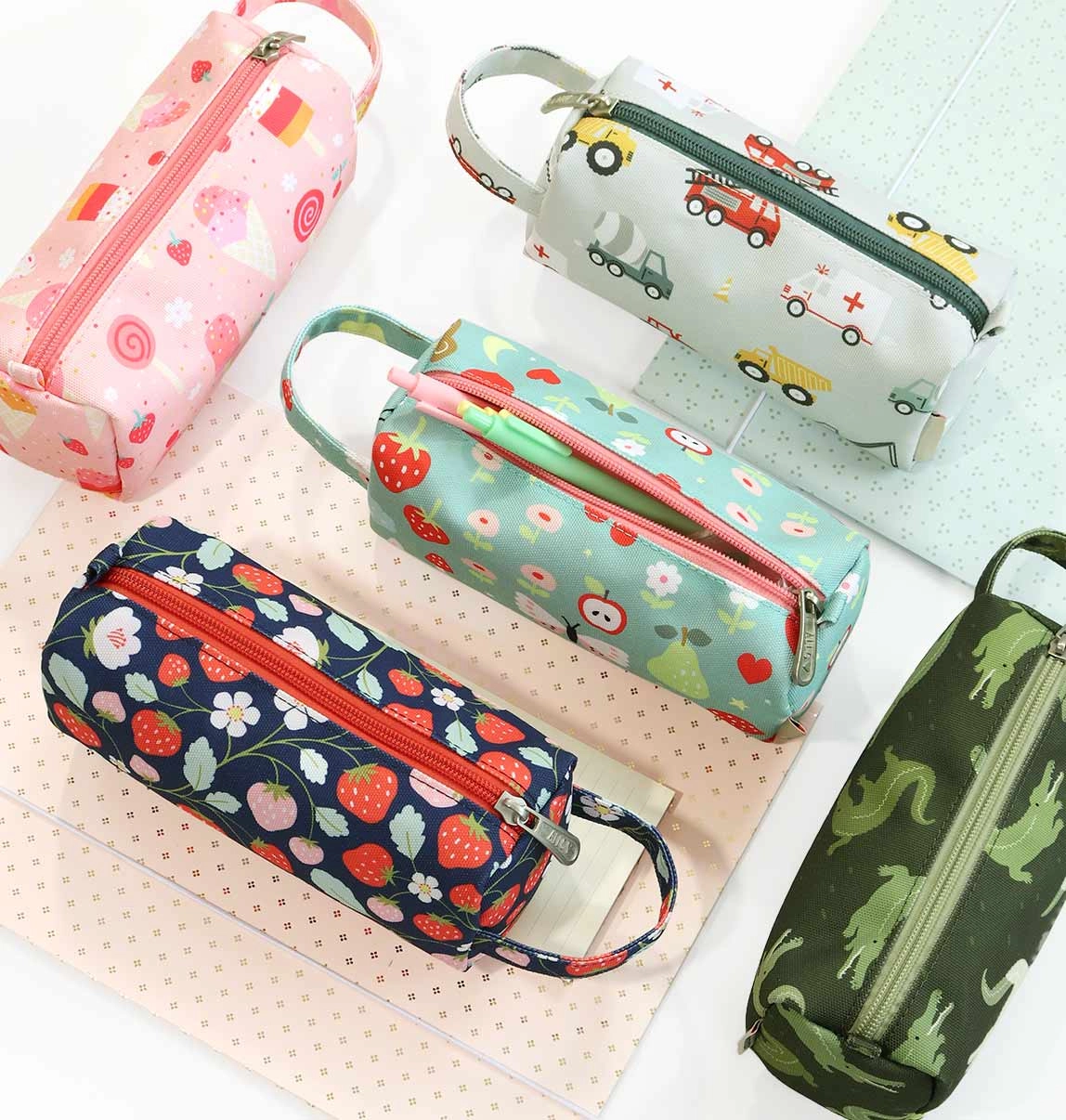 Stilīgs zīmuļu un rakstāmpiederumu maciņš ar transportlīdzekļu motīvu no ilgtspējīga poliestera. Viegls, izturīgs un praktisks lietošanai mājās, skolā un ceļā. Tam ir rāvējslēdzēja aizdare, oderējums un ērts rokturis ērtai pārnēsāšanai.