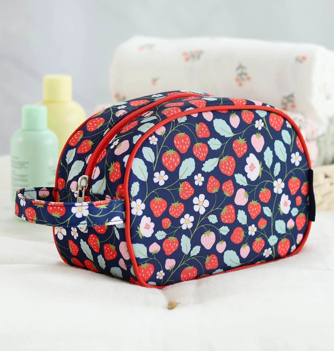 Stilīga tualetes somiņa ar zemeņu motīvu ir ideāla izbraucieniem, nometnēm un atvaļinājumam. Tā piedāvā ietilpīgu nodalījumu šampūnam, ziepēm, zobu birstei un citām sīklietām, ir praktiska roktura cilpa ērtai pārnēsāšanai un izturīgs dizains ikdienas lietošanai.