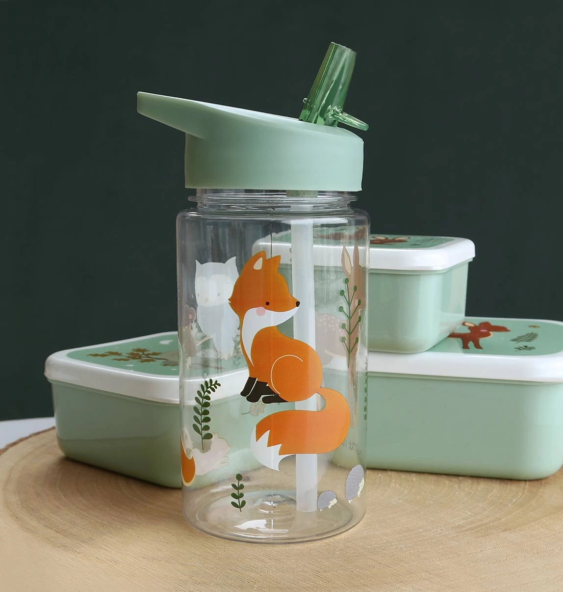 Caurspīdīga bērnu dzeršanas pudele ar meža dzīvnieciņu motīvu, tilpums 450 ml, ideāli piemērota bērnudārzam un izbraucieniem. Pateicoties drošam aizbāznim tā ir necaurlaidīga, viegla un izturīga. Tritāna materiāls bez BPA nodrošina ilgu kalpošanas laiku un tīru dzēriena garšu. Izveidojiet pilnu komplektu vienotā dizainā – pudele, mugursoma un uzkodu kārbiņa.