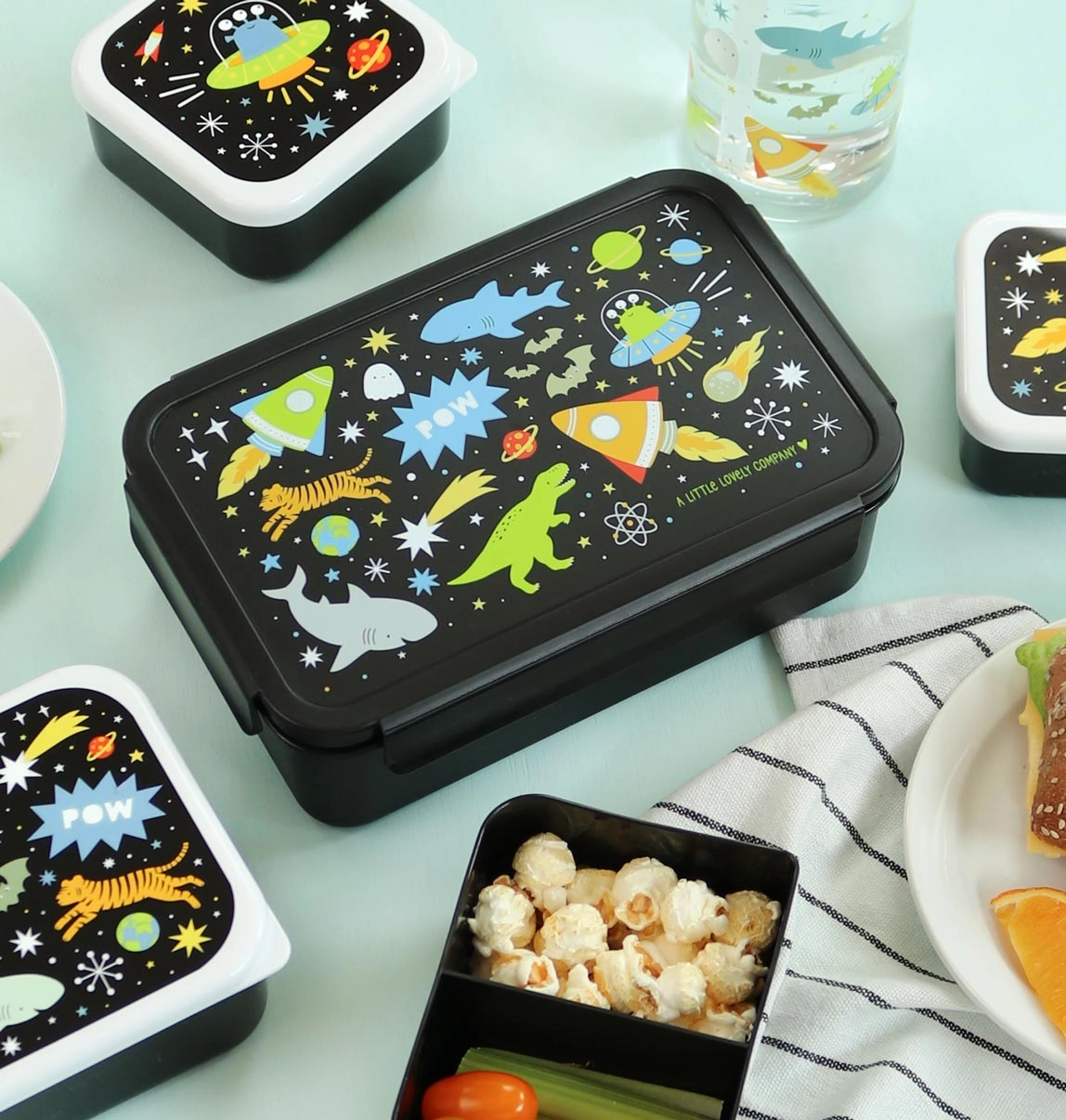Stilīga bērnu uzkodu kastīte ar kosmosa motīvu ir ideāli piemērota skolai un izbraucieniem. Tai ir hermētiski aizspiežams vāks, izņemams trauciņš ar divām nodalījuma daļām un 1,2 l tilpums ērtai un svaigai uzkodu glabāšanai visas dienas garumā.