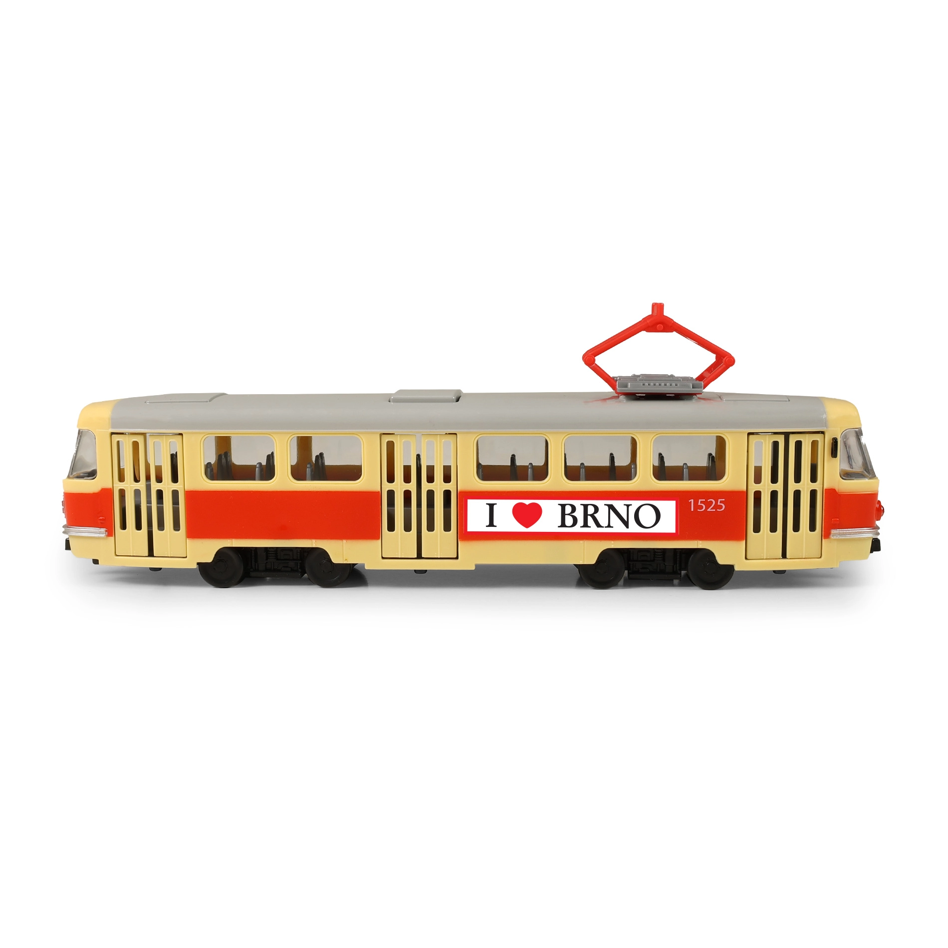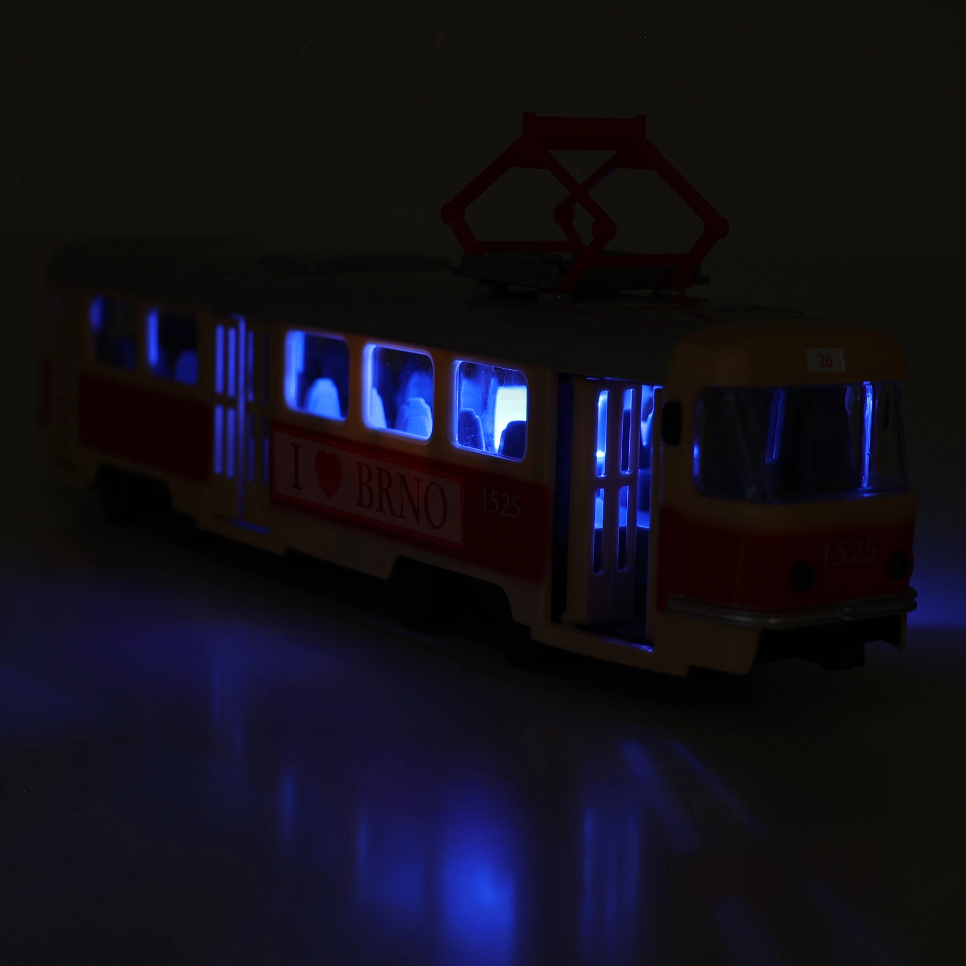Atklājiet jautru un detalizēti izstrādātu tramvaju T3 ar BRNO motīvu, kas iepriecinās gan mazus, gan lielus pilsētas transporta cienītājus. Katru reizi, atverot durvis, atskan autentiski pieturu paziņojumi čehu valodā, bet, aizverot, tramvajs paziņo nākamo pieturu. Priekšējo durvju atvēršana papildus aktivizē zilo iekšējo apgaismojumu, kas pastiprina reālistisku spēles iespaidu.