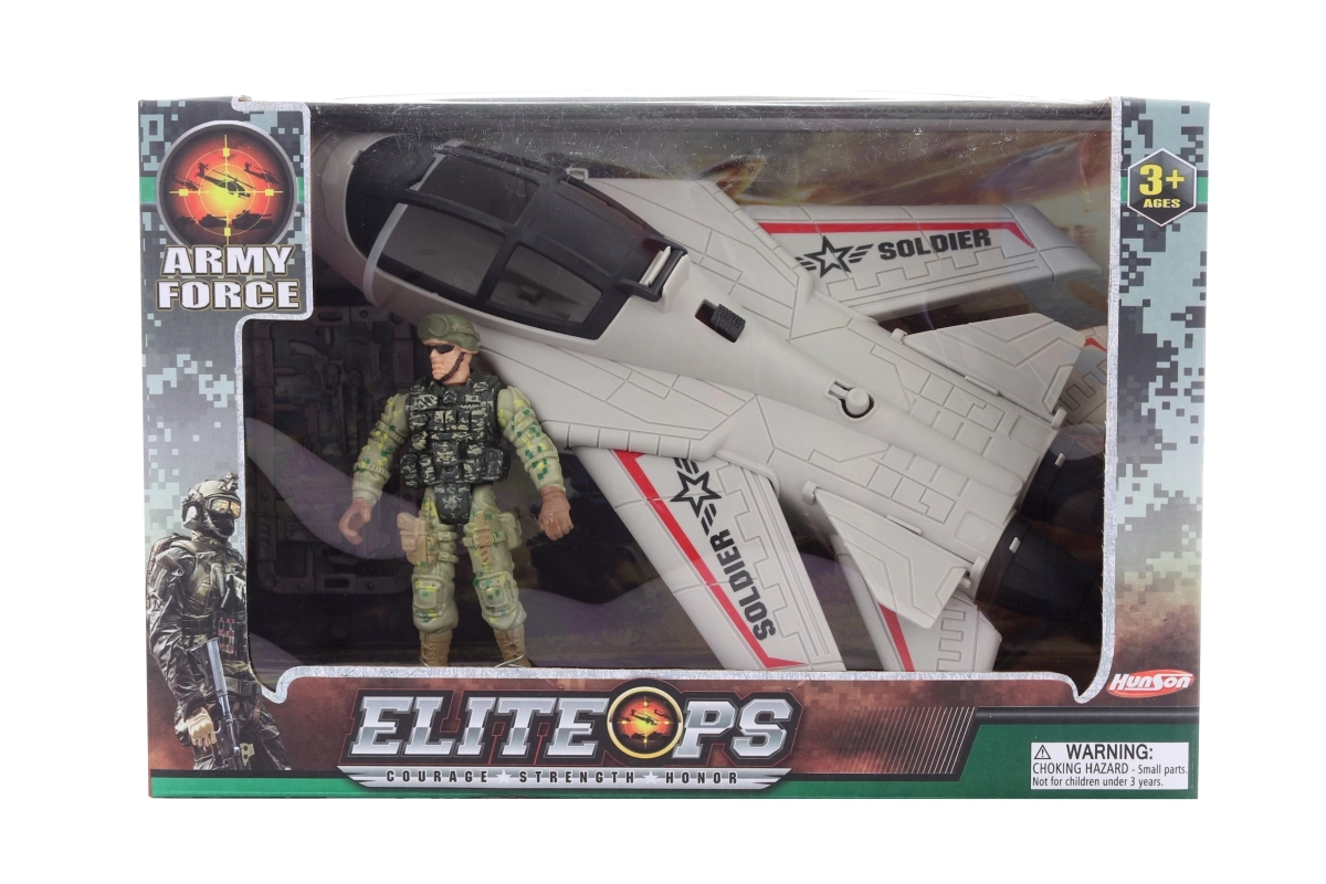 Militārais komplekts ar reālistisku iznīcinātāju un karavīru mazajiem piedzīvojumu mīļotājiem. Ideāla rotaļlieta, kas attīsta iztēli un veiklību.