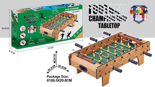 Izbaudiet aizraujošas spēles jebkur un jebkurā laikā. Šis mini galda futbols ir ideāla izvēle mājas izklaidei, biroja pauzēm un ceļošanai. Izturīgā koka konstrukcija nodrošina stabilitāti un ilgmūžību, savukārt kompaktie izmēri atvieglo pārnēsāšanu un uzglabāšanu.