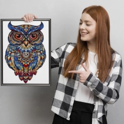 Pēc salikšanas veidojas izteiksmīga, krāsaina pūce ar bagātīgām detaļām – lieliska izklaide un oriģināla dekorācija jūsu interjerā.