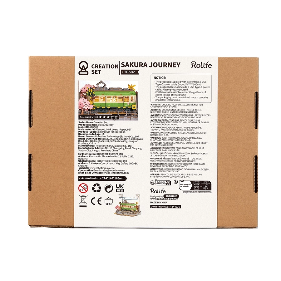Ienirstiet miniatūrās arhitektūras pasaulē ar unikālo 3D koka puzli “Sakura stacija”. Šis brīnišķīgais modelis, iedvesmots no Japānas tramvaja pieturas Kamakurakōkōmae, piedāvā reālistiskas detaļas, tostarp ziedošas sakuras un LED apgaismojumu, kas piešķir modelim izteiksmīgu noskaņu.