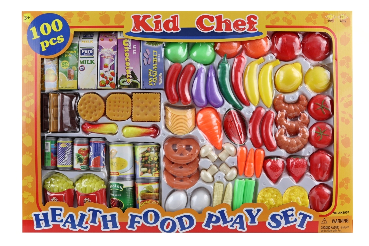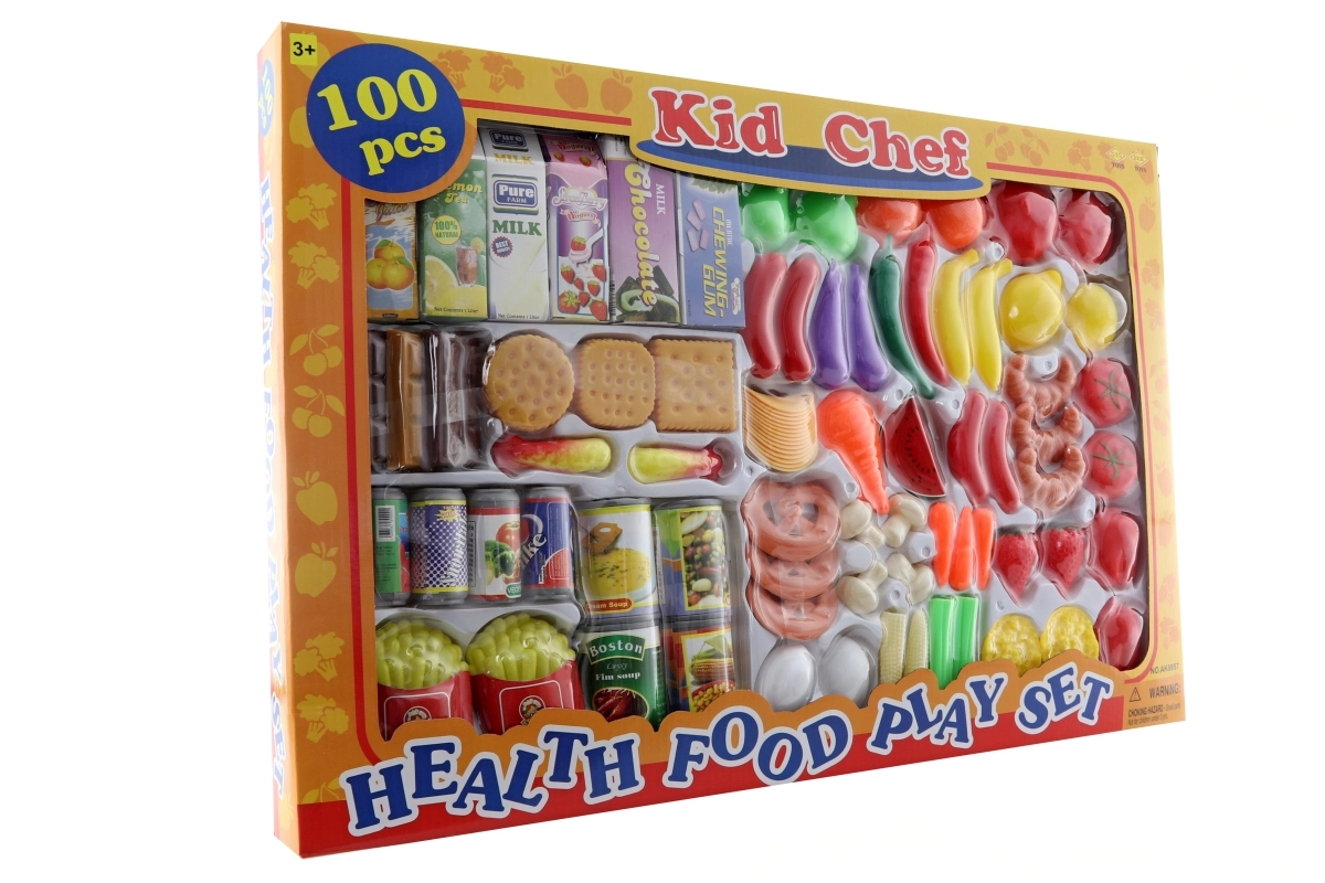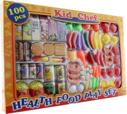 Atklājiet jautru un krāsainu virtuves spēli ar šo lielo pārtikas komplektu bērniem. Iepakojumā ir 100 detaļas, tostarp augļi, dārzeņi, saldumi, konditoreja, kā arī bundžas un kartona dzērieni. Ideāli piemērots iztēles attīstīšanai, krāsu un formu mācībām un kopīgai spēlei. Piemērots no 3 gadu vecuma.