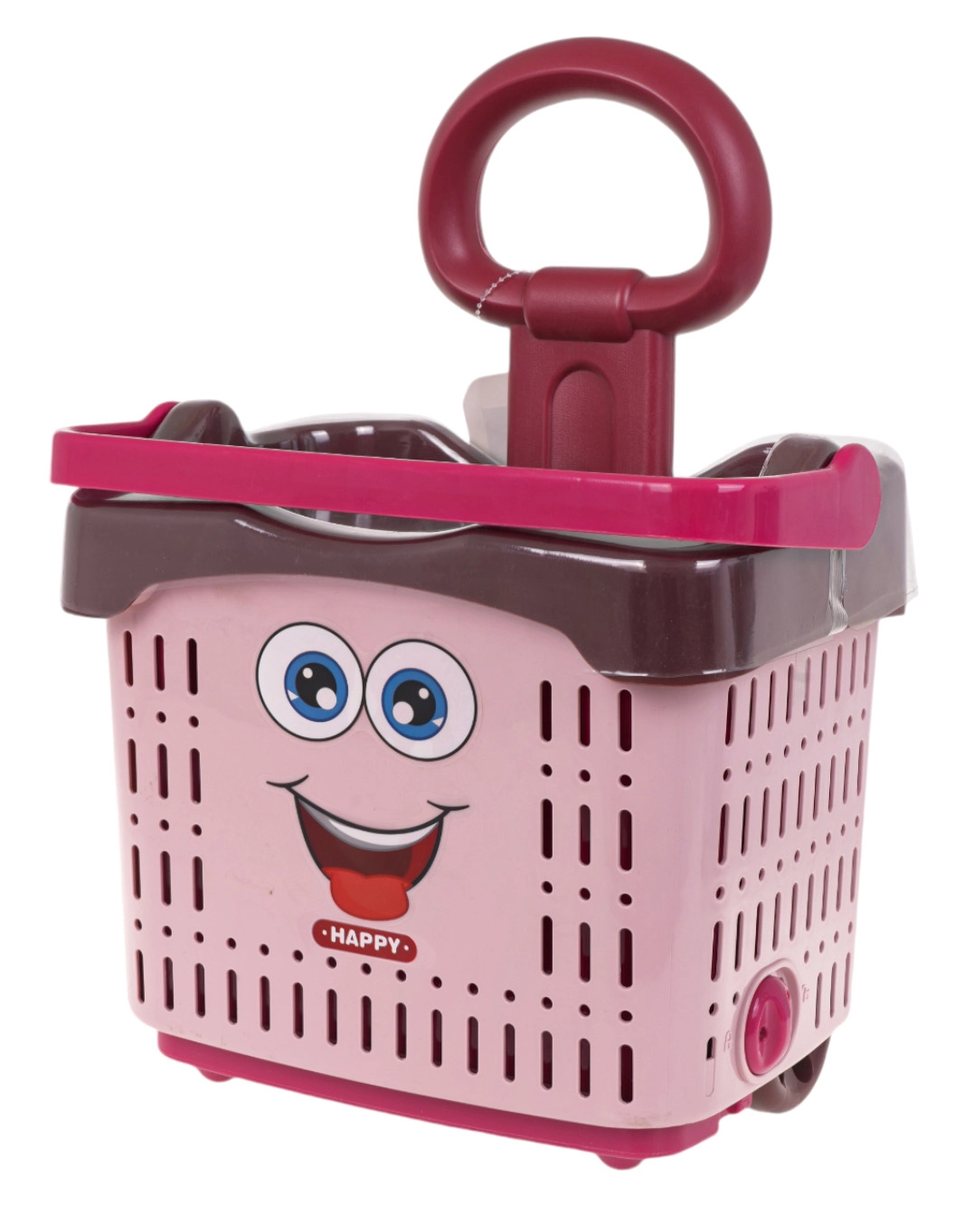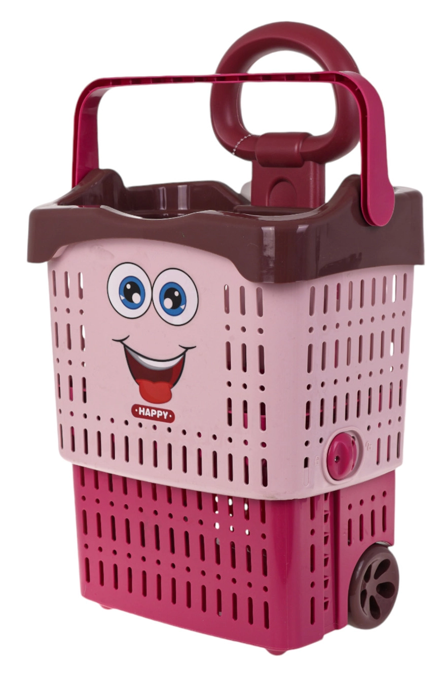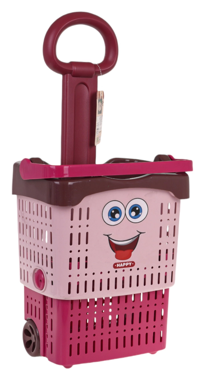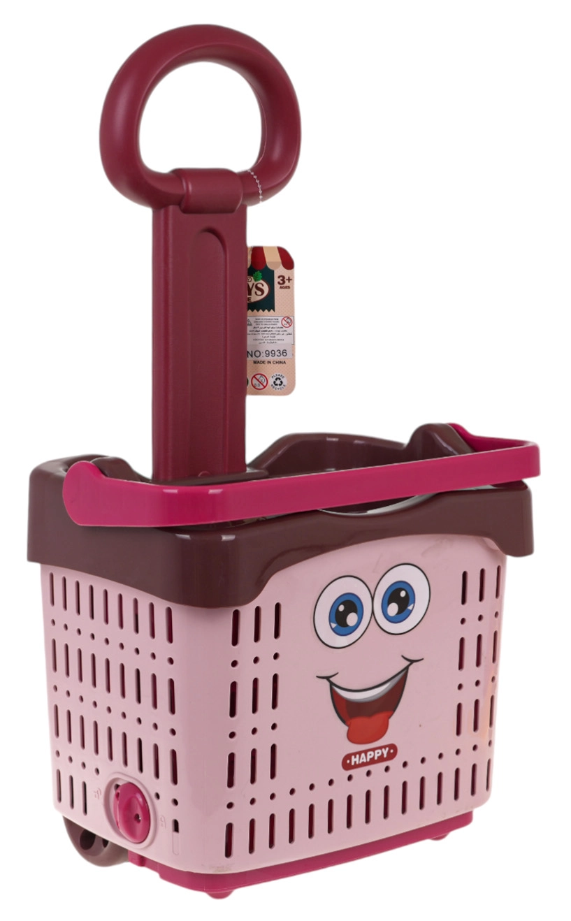 Šim rozā iepirkumu grozam ir rotaļīgs dizains ar jautru sejiņu, un tas ir ideāli piemērots radošuma un sociālās mijiedarbības attīstīšanai.