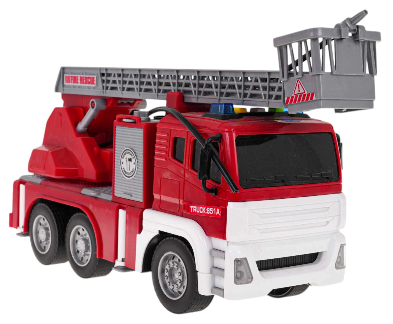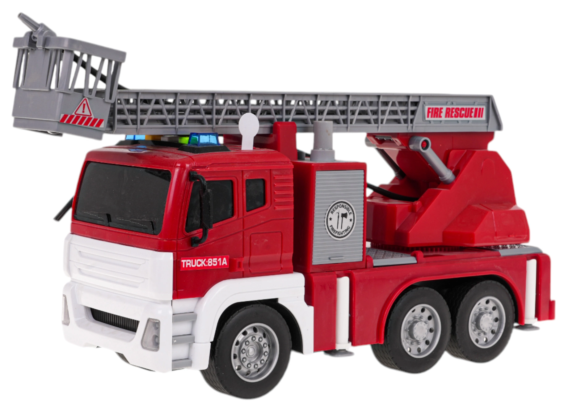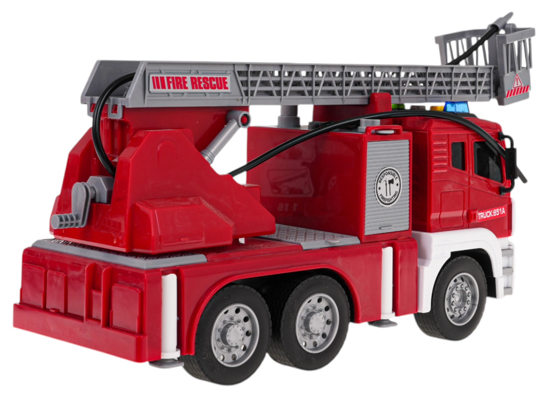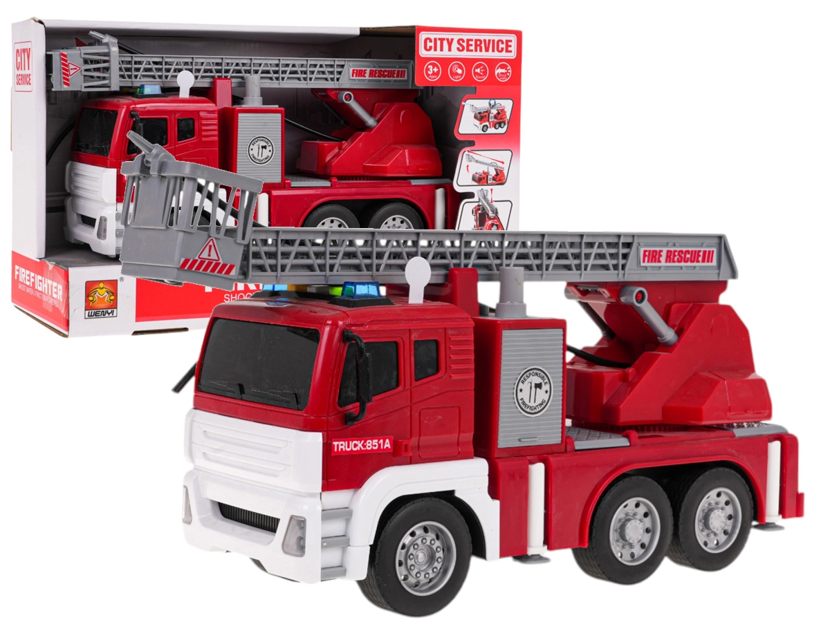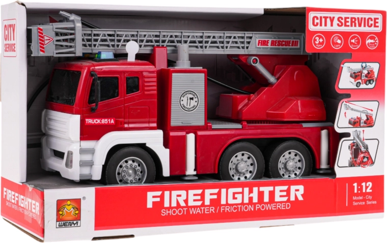 Šī interaktīvā ugunsdzēsēju mašīna ir lielisks rotaļu sabiedrotais bērniem, kuri mīl dinamisku spēli. Transportlīdzeklis ir izgatavots no augstas kvalitātes materiāliem un piesaista uzmanību ar košām krāsām. Pateicoties kustīgām, regulējamām kāpnēm, gumijas riepām un ūdens šļakstīšanas funkcijai, spēle ir maksimāli reālistiska un aizraujoša. Mašīnu darbina berzes mehānisms uz priekšējās ass, un tā ir aprīkota ar gaismas efektiem kombinācijā ar skaņas signāliem, kas imitē īstu izsaukumu.