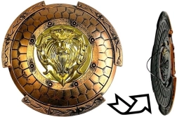 Vairogs ir rūpīgi dekorēts un kalpo ne tikai rotaļām, bet arī kā skaista dekorācija bērnistabā.