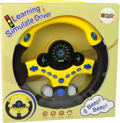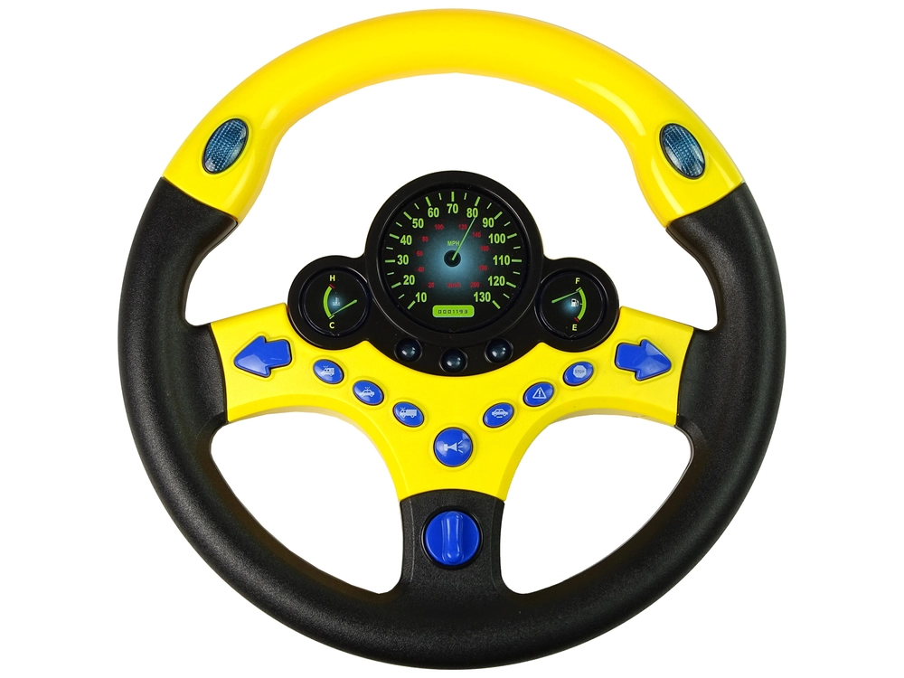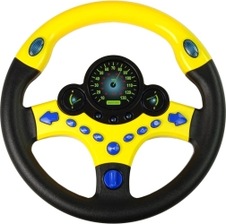 Šis bērnu braukšanas simulators dzeltenā un melnā krāsu salikumā ir paredzēts mazām rokām un piedāvā līdz pat 9 funkcionālām pogām, tostarp pagriezienu rādītājus, tauri un operatīvo dienestu signālus. Zilais instrumentu apgaismojums un reālistiskā pagriezienu klikšķēšana rada saistošu īstas braukšanas atmosfēru.